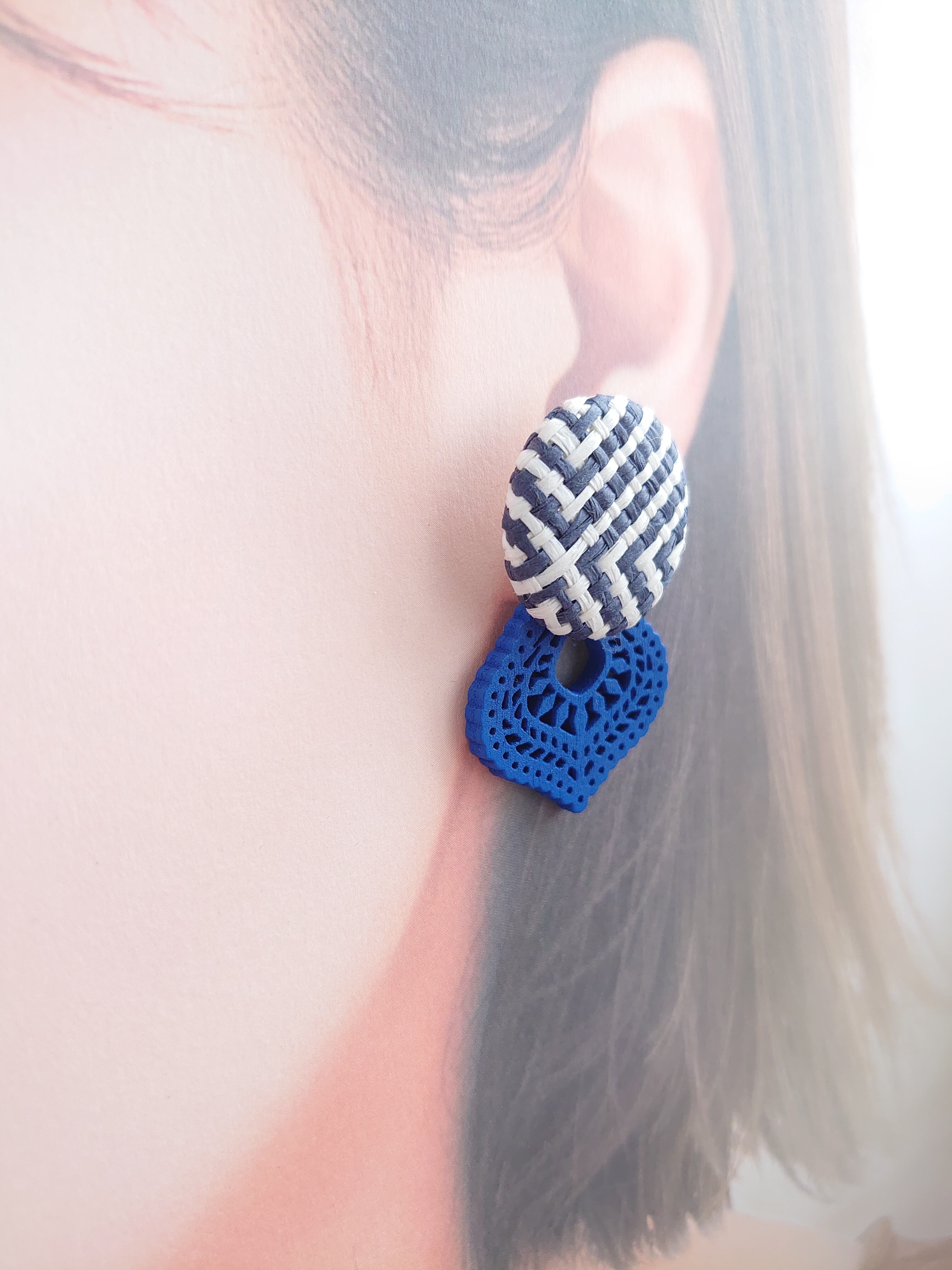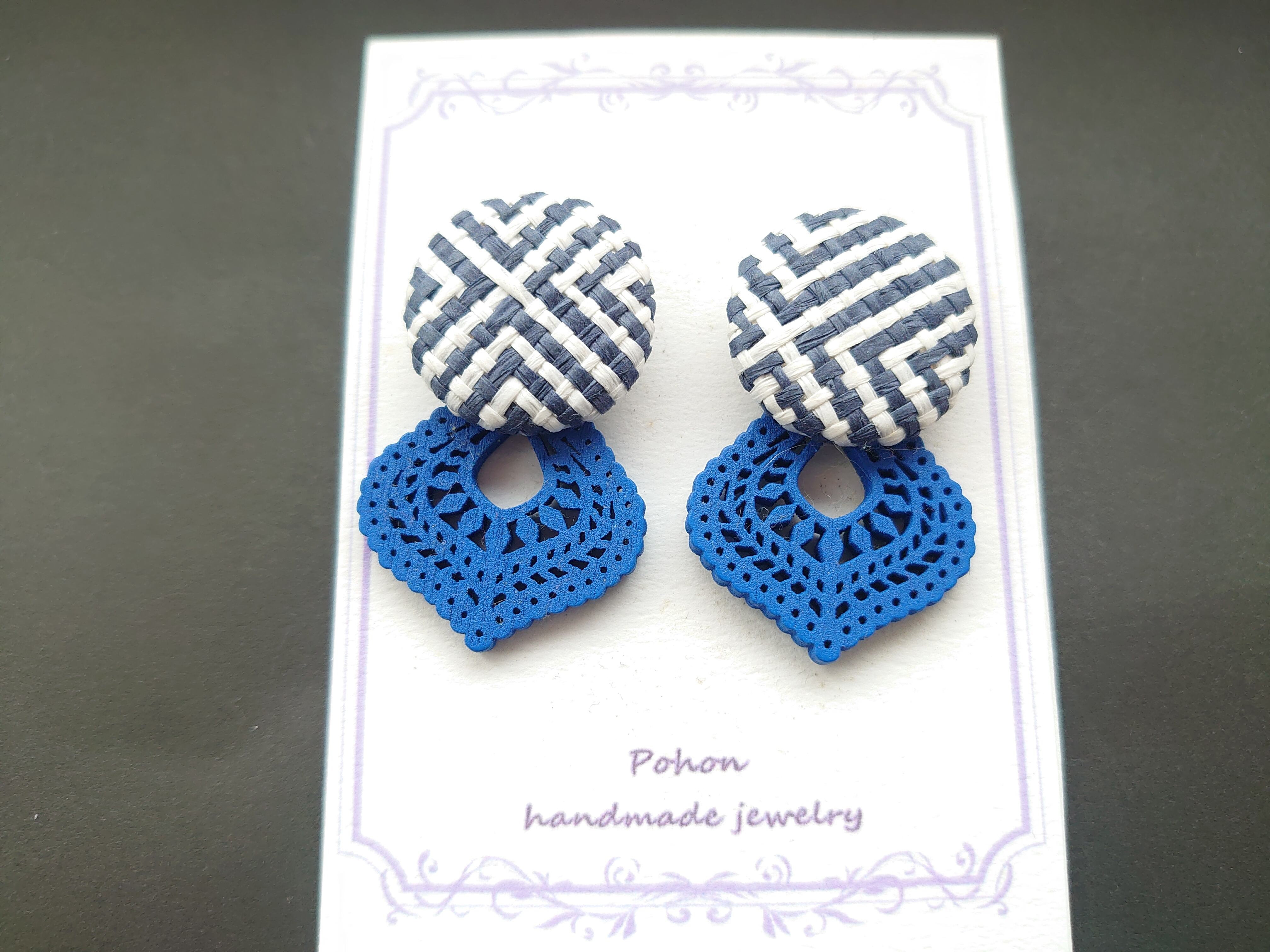 半額以下セール!夏カラー くるみボタン ウッド 透かし ピアス / PohonhandmadeJewelry
