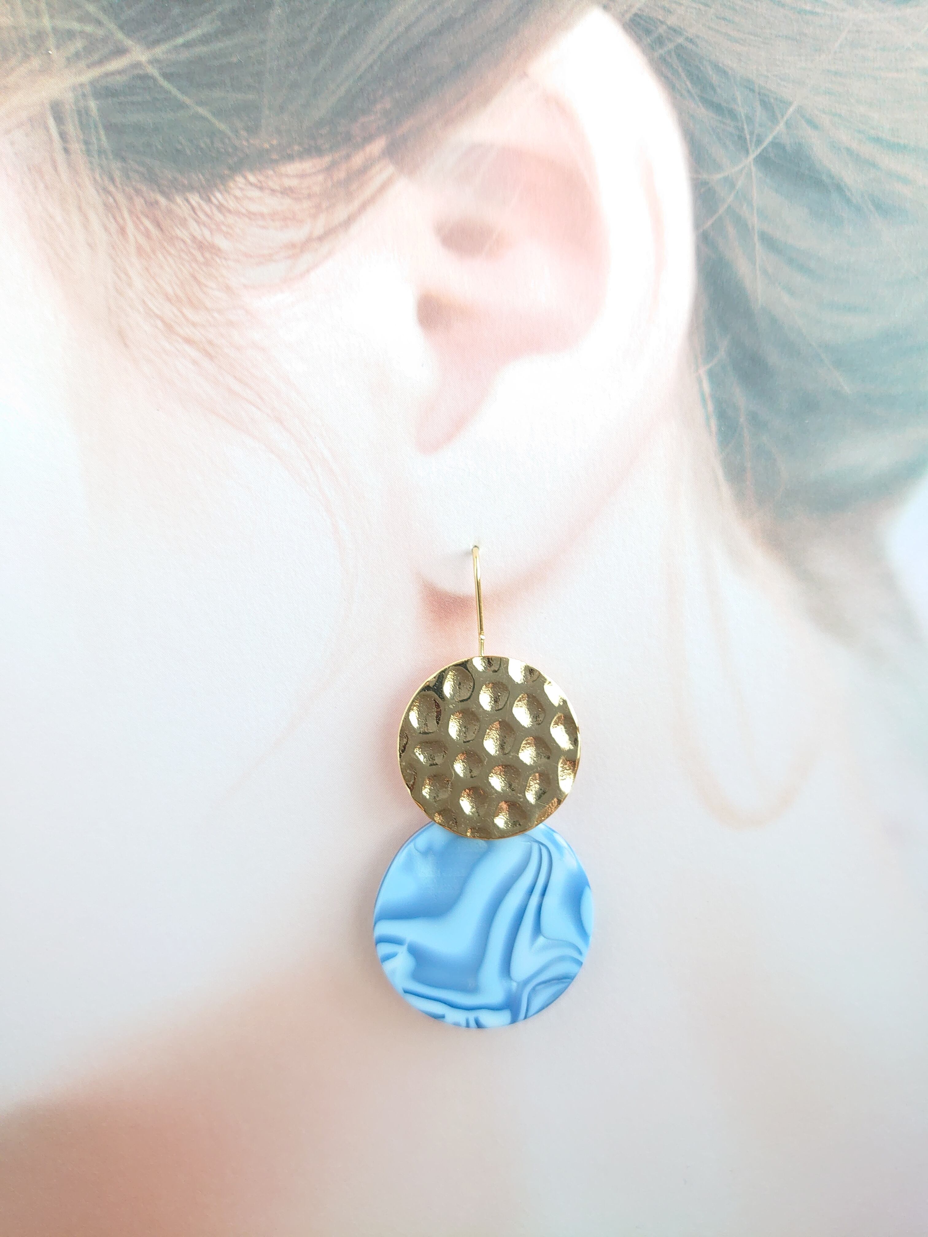 半額以下セール!真鍮 18KGP本金メッキ アクリルラウンド ピアス / PohonhandmadeJewelry
