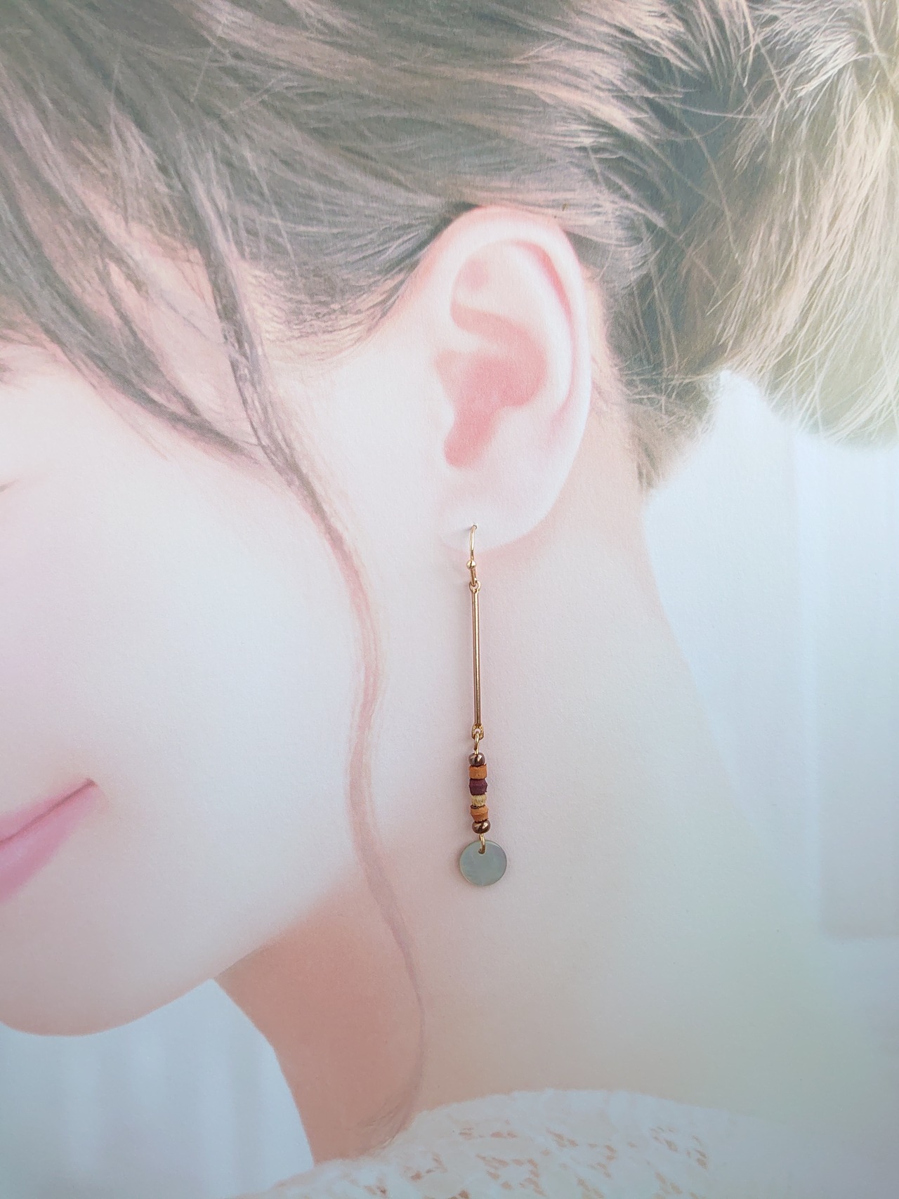 半額以下セール!フラットラウンドシェル ロング ピアス / PohonhandmadeJewelry