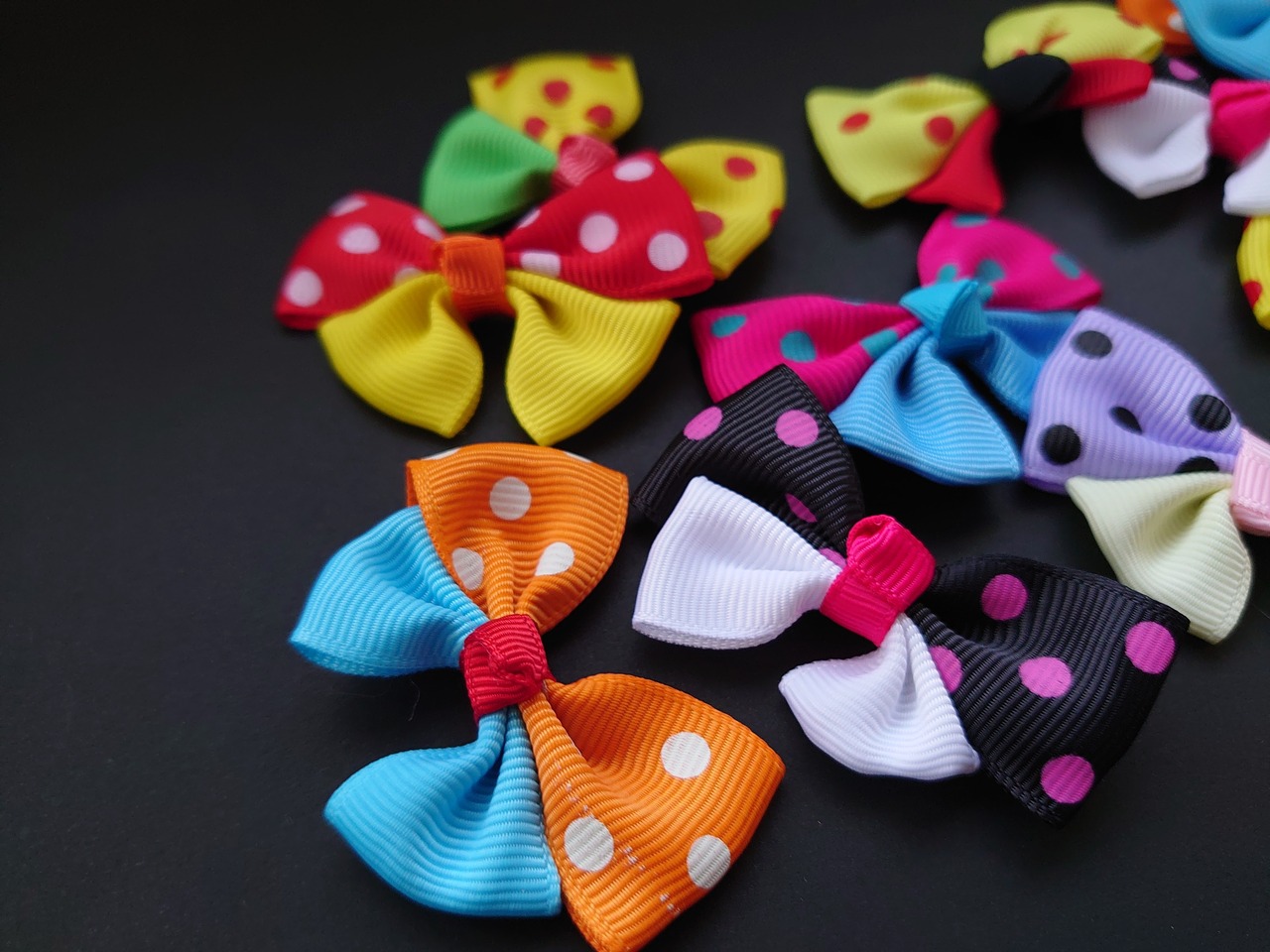 【値下げ在庫限り】グログラン ドット 水玉 × 無地 リボン ミックスカラー 2個