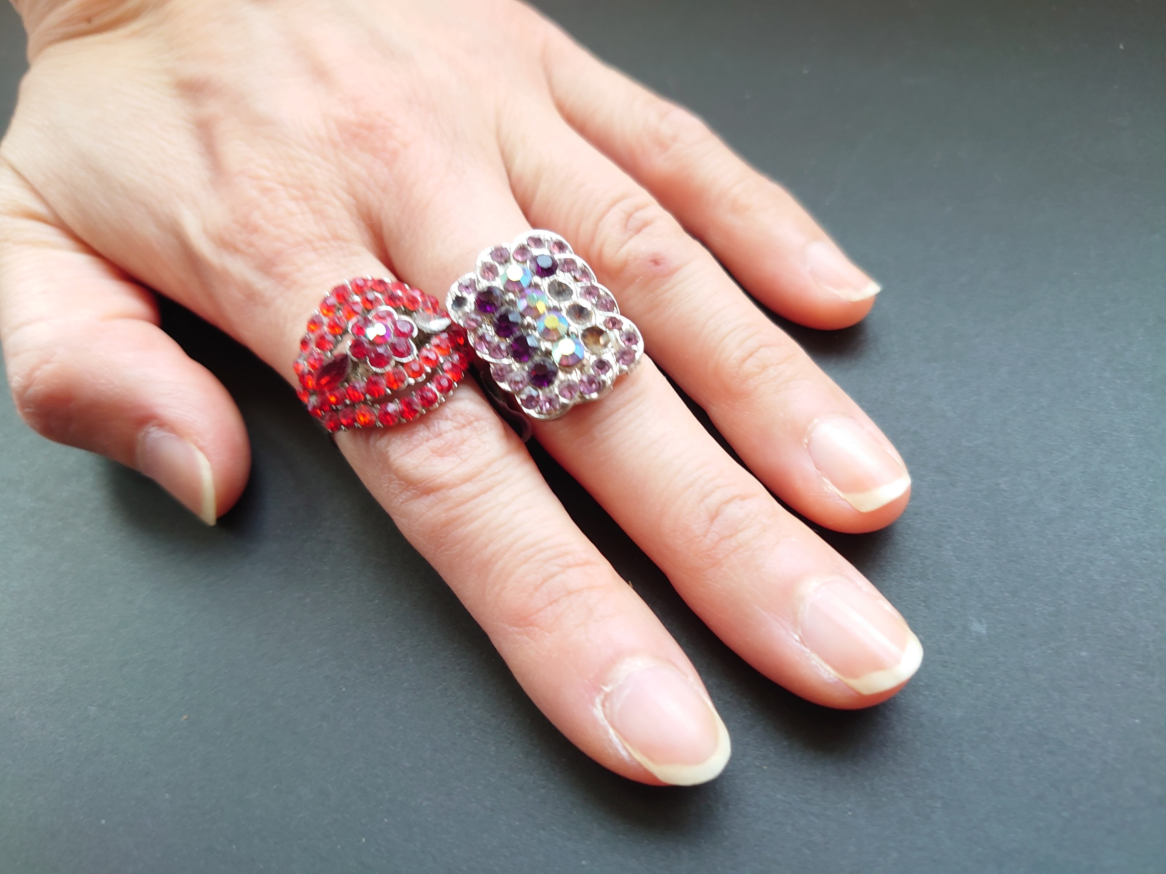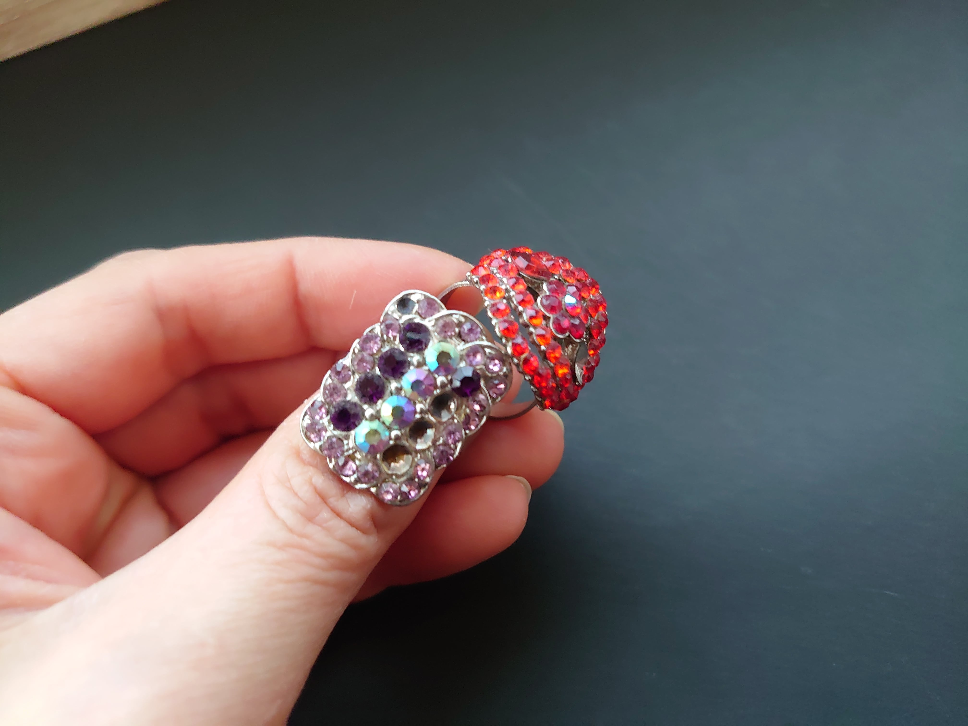 【訳あり値下げ在庫限り】キラキラ リング指輪 フリーサイズ デザインミックス 2個