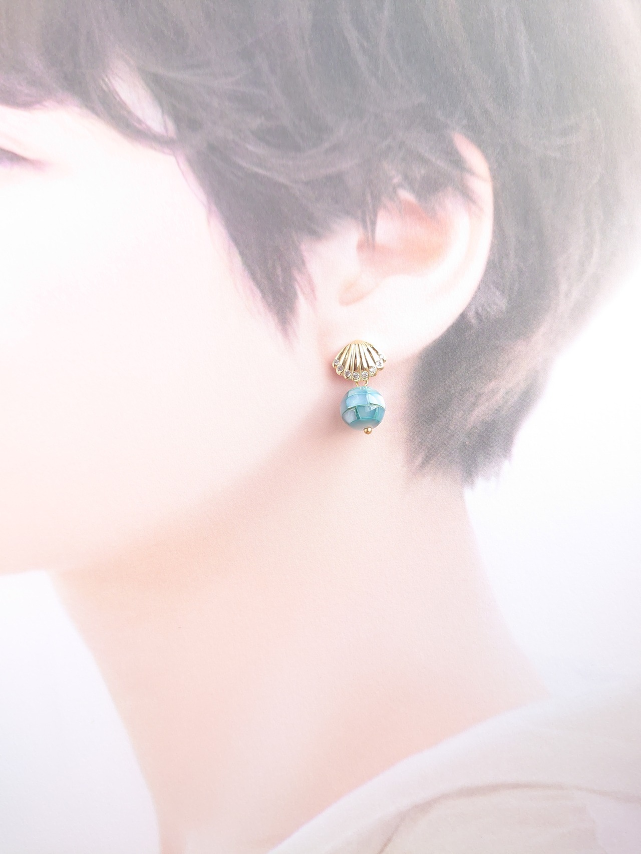 素材:モザイクシェル、ピアス金具のラインストーン→キュービックジルコニア