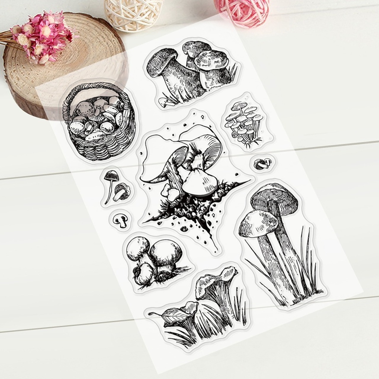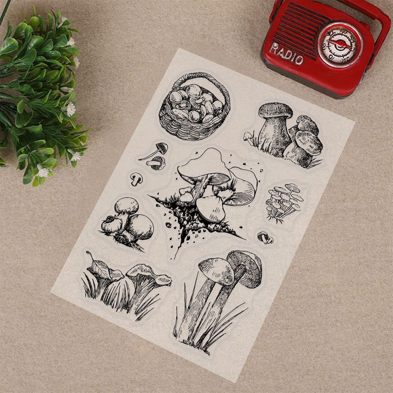 【値下げ在庫限り】クリア スタンプシート キノコ 1シート