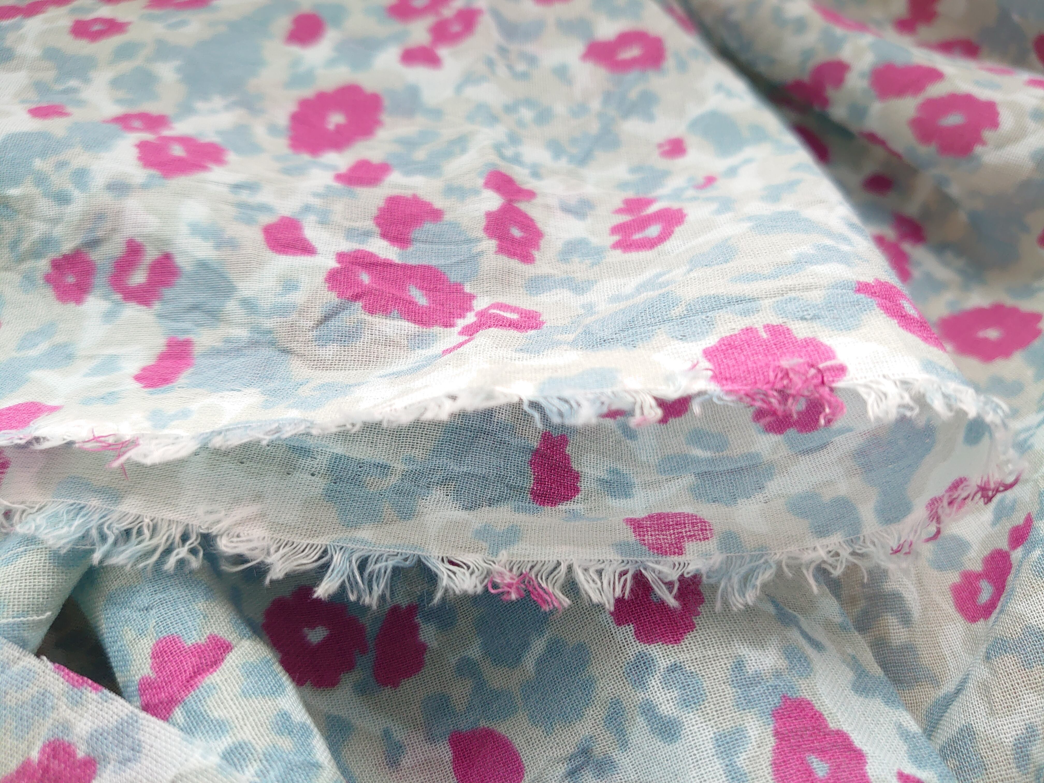 【値下げ在庫限り】シワ加工 ボイルワッシャー 生地 フラワー 50cmカット済