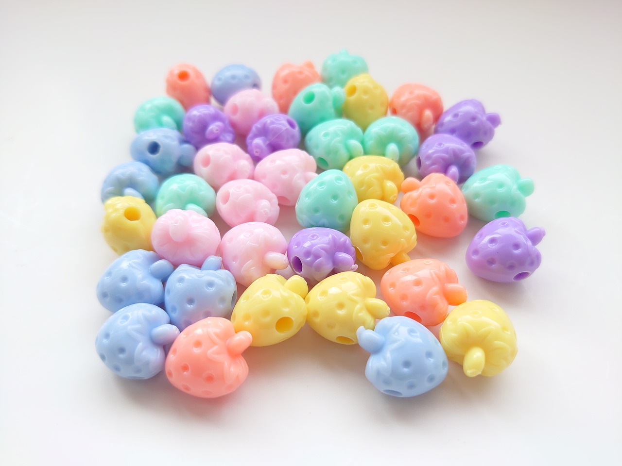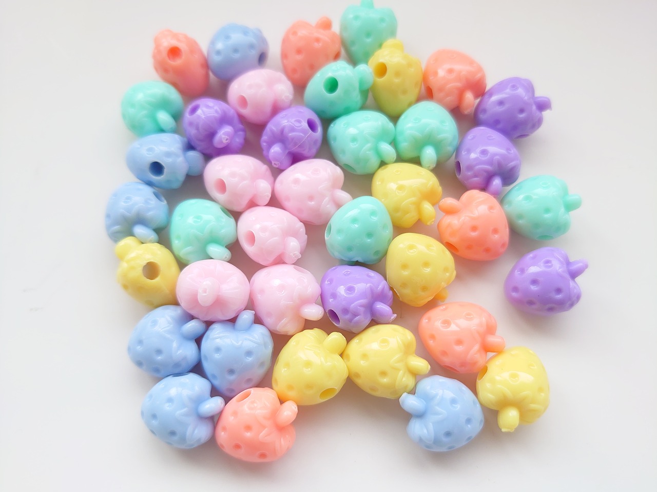 【値下げ在庫限り】アクリル 横穴 3mm いちご ビーズ ミックスカラー パステルカラー 10個