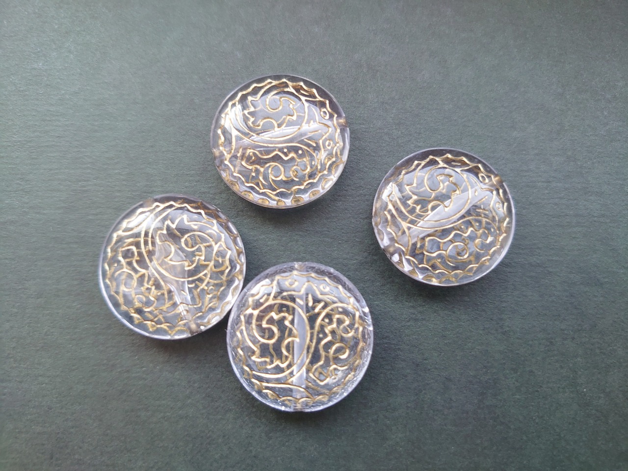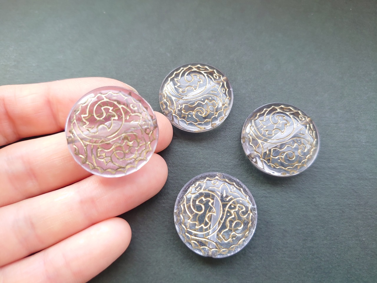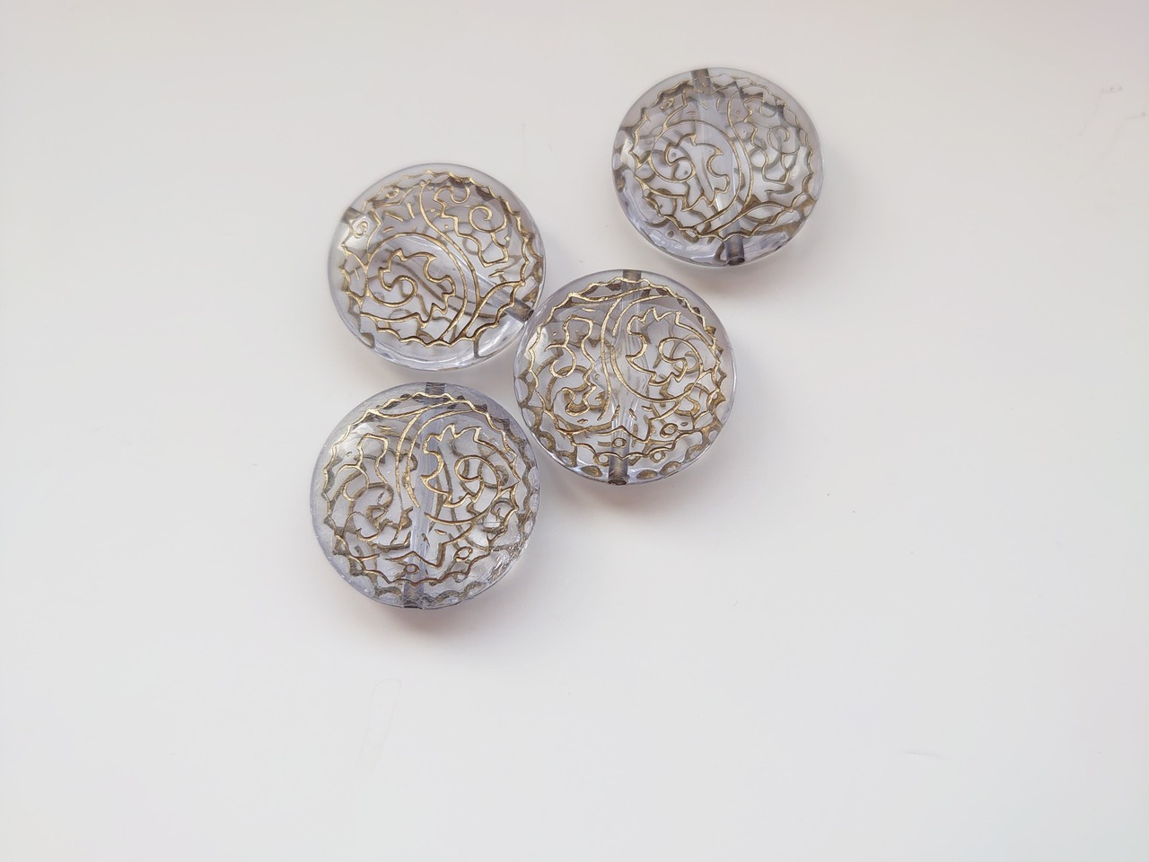 【値下げ在庫限り】手染めゴールドライン アンティーク調 ツタフラワー フラットラウンド ビーズ ネイビーブルー グレー 2個