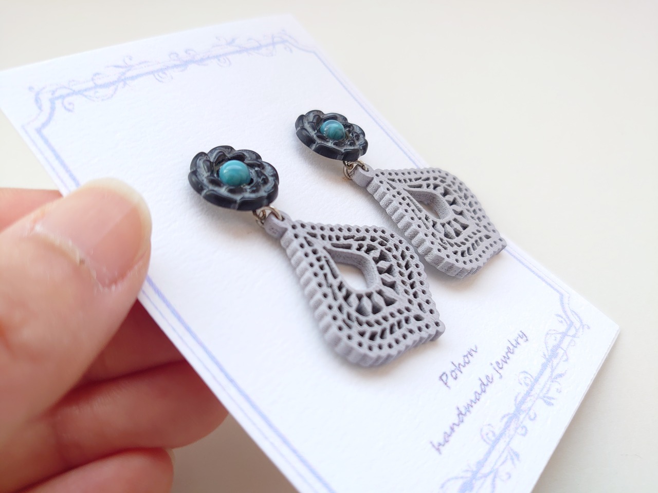 半額以下セール!ボタン 透かしウッド ピアス / PohonhandmadeJewelry