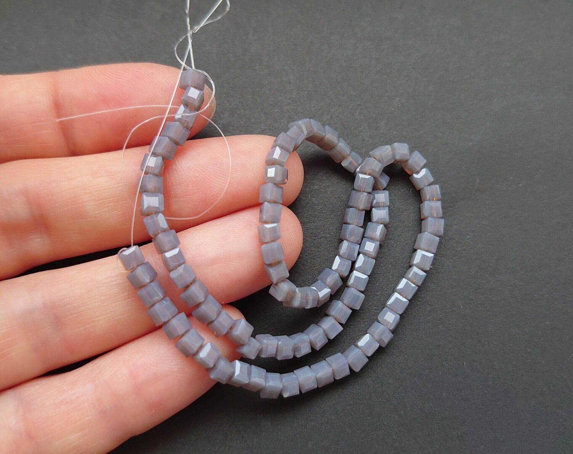 【値下げ在庫限り】ガラス スクエア 多面カット エレガントグレー 3mm ビーズ 30個