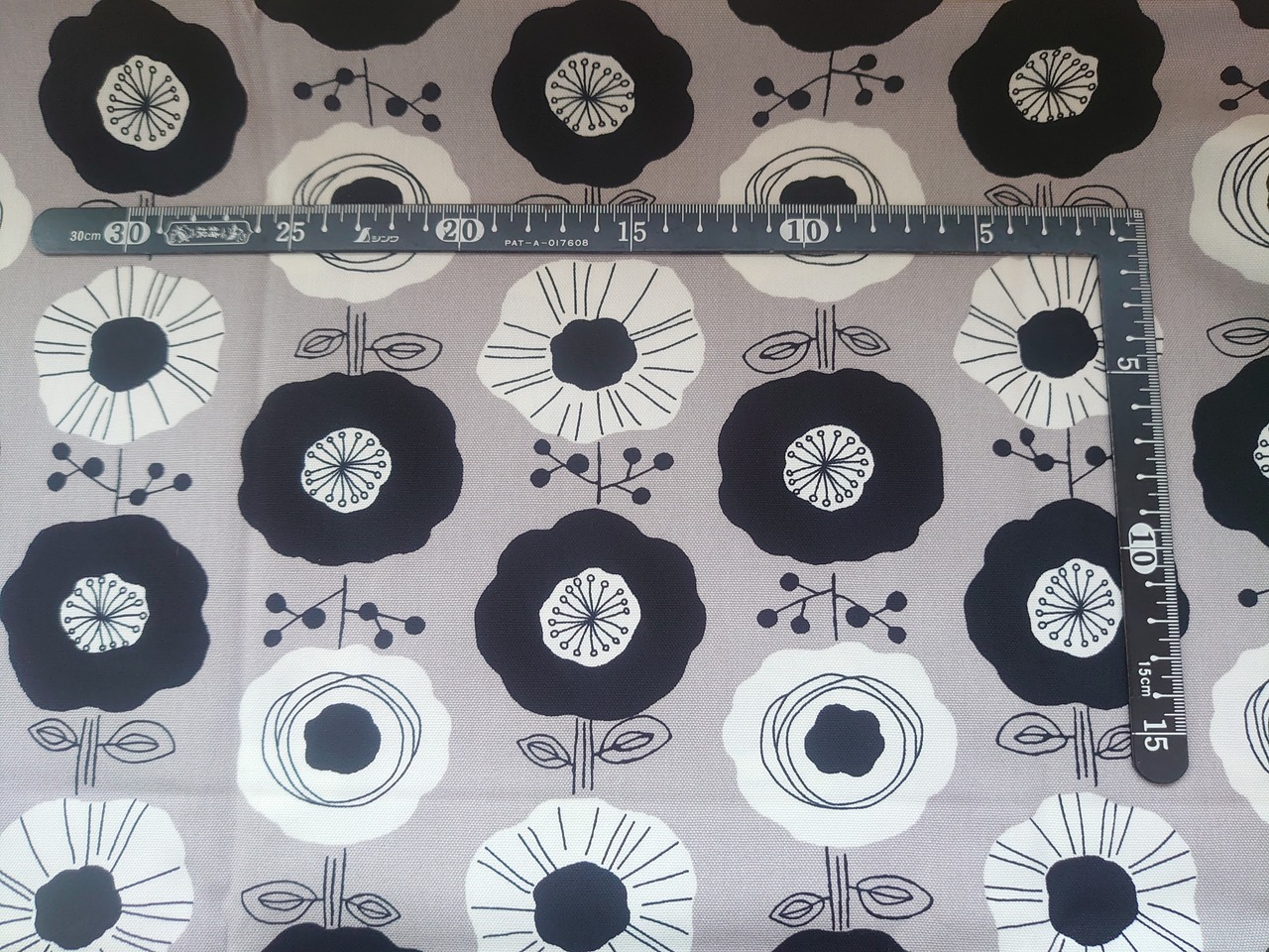 【値下げ在庫限り】コットン オックス生地 グレー フラワー 約110cm幅 約50cm切り売り