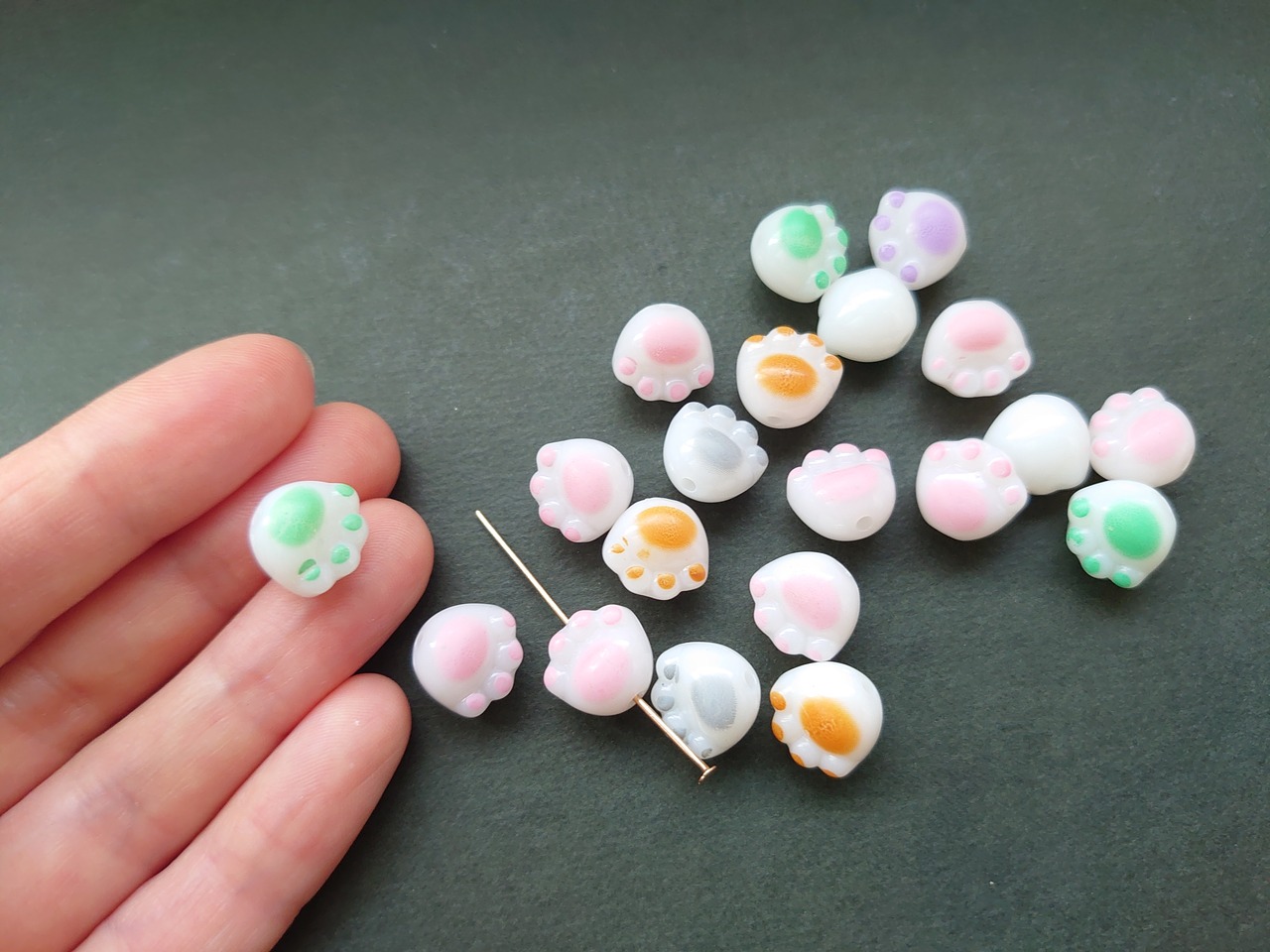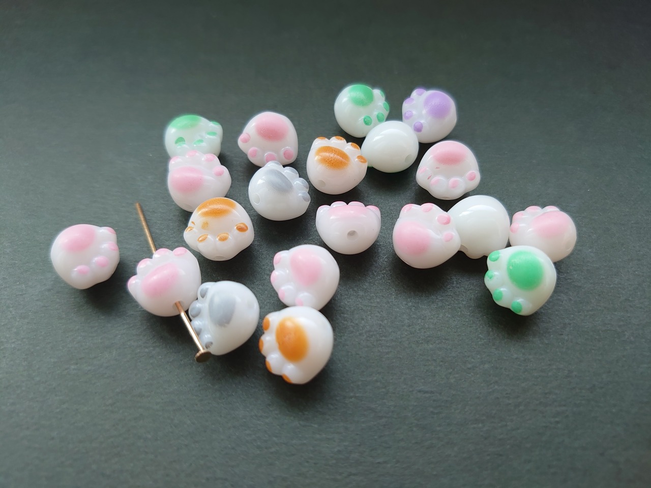 樹脂 まるっこい 肉球 ビーズ ホワイト ミックスカラー 5個