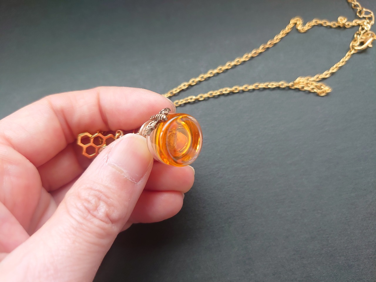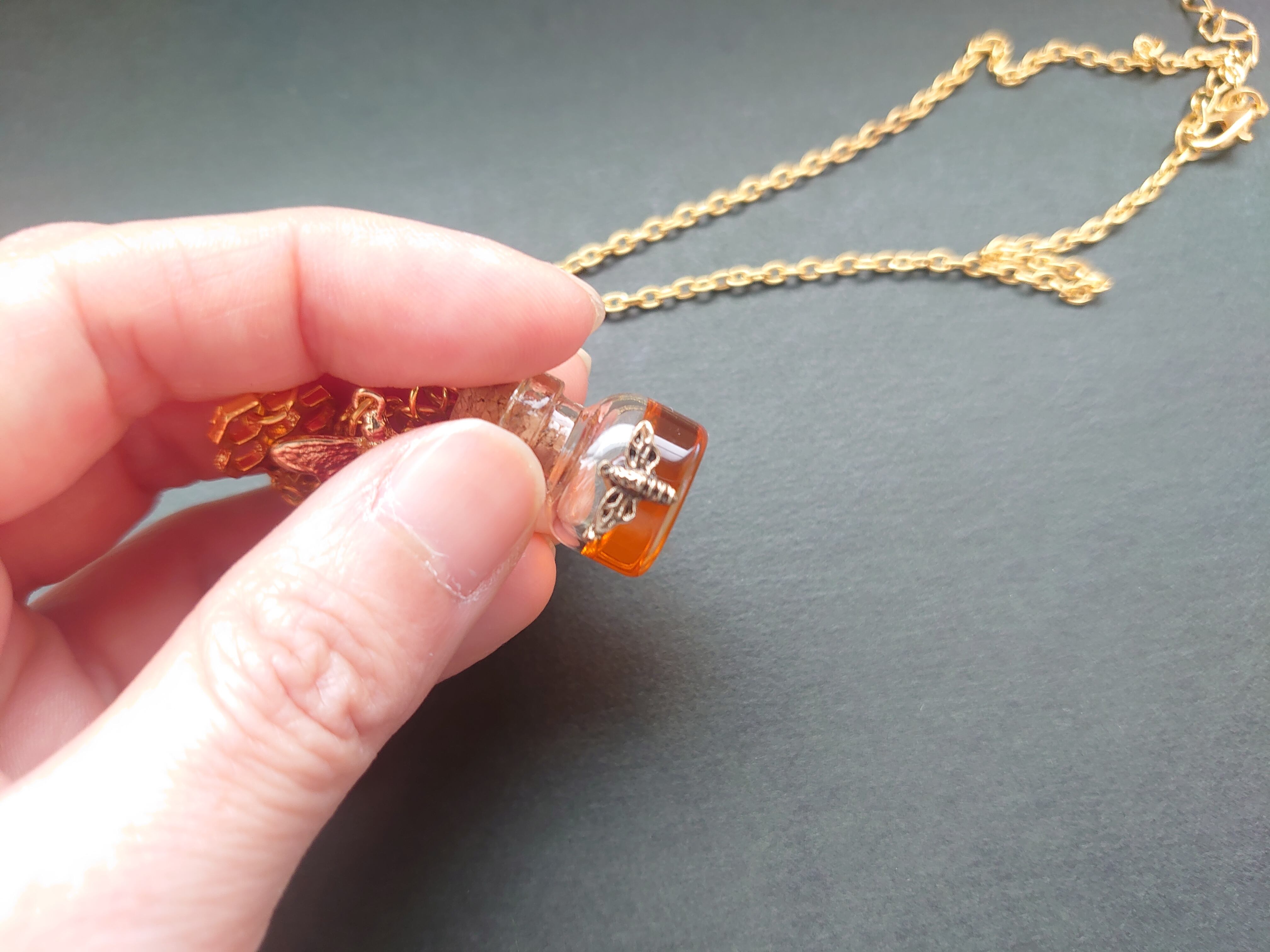 コルク栓 ガラス瓶 蜂 はちみつ ネックレス 1個