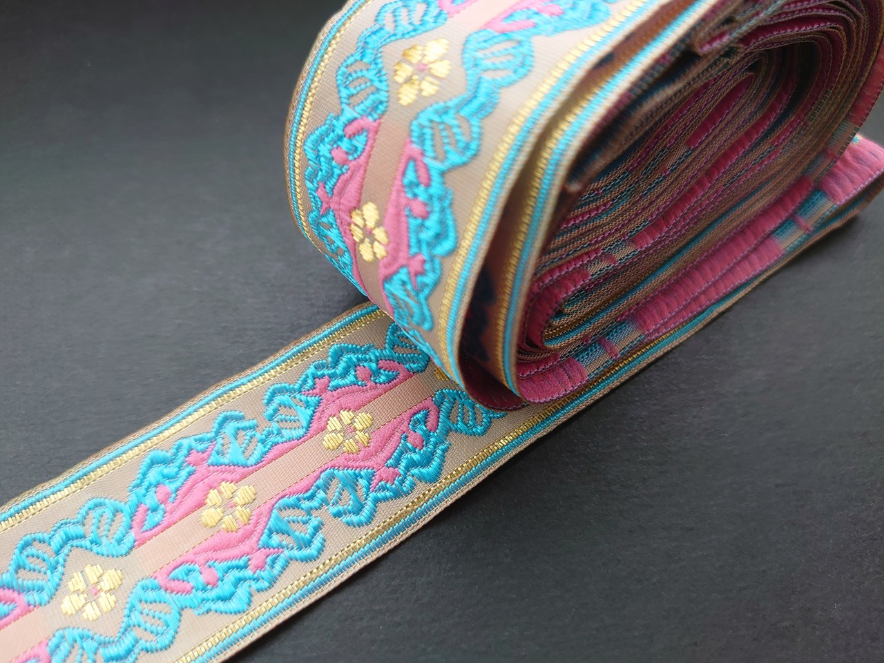 【値下げ在庫限り】刺繍 チロリアンテープ ベージュ 水色 ピンク 50cm切り売り
