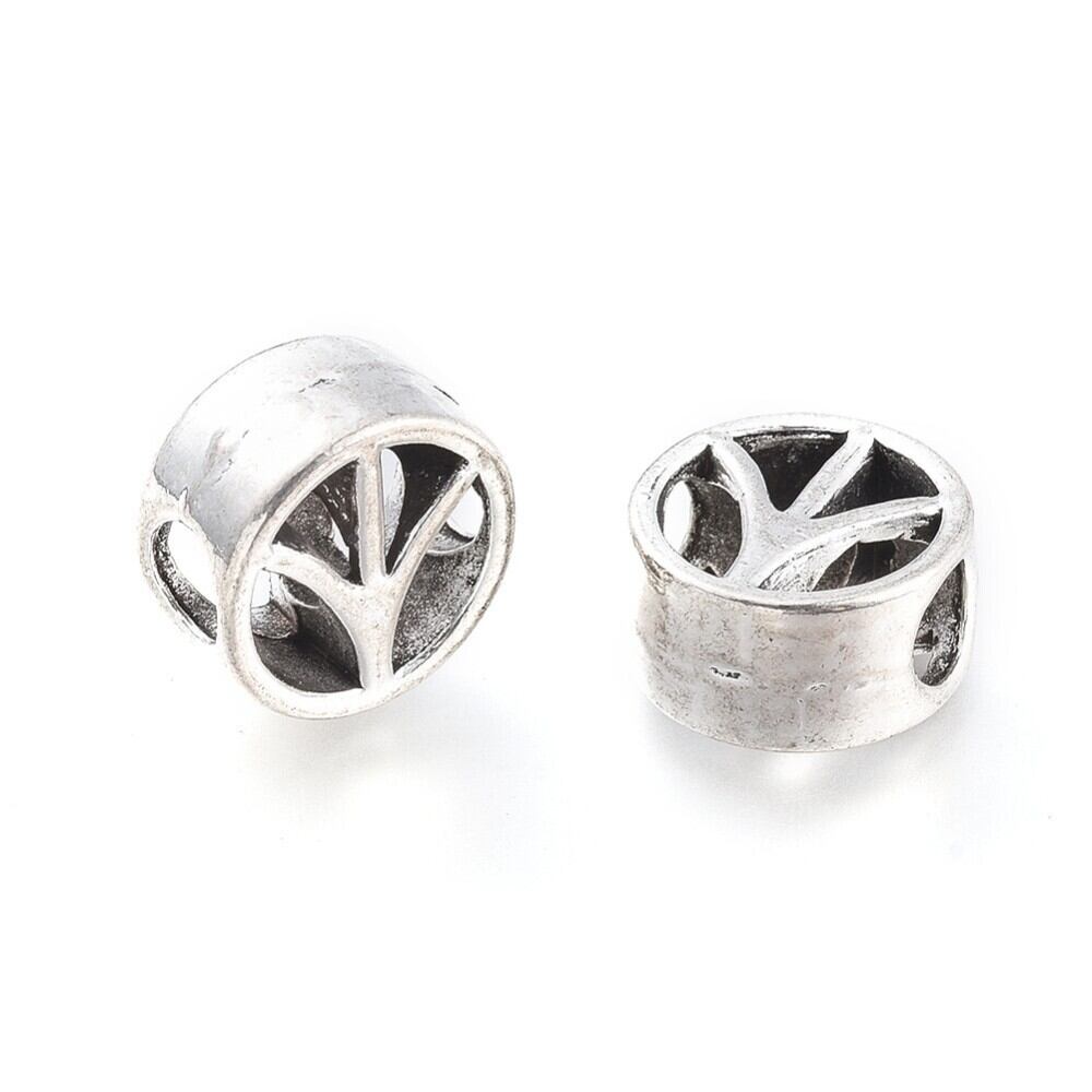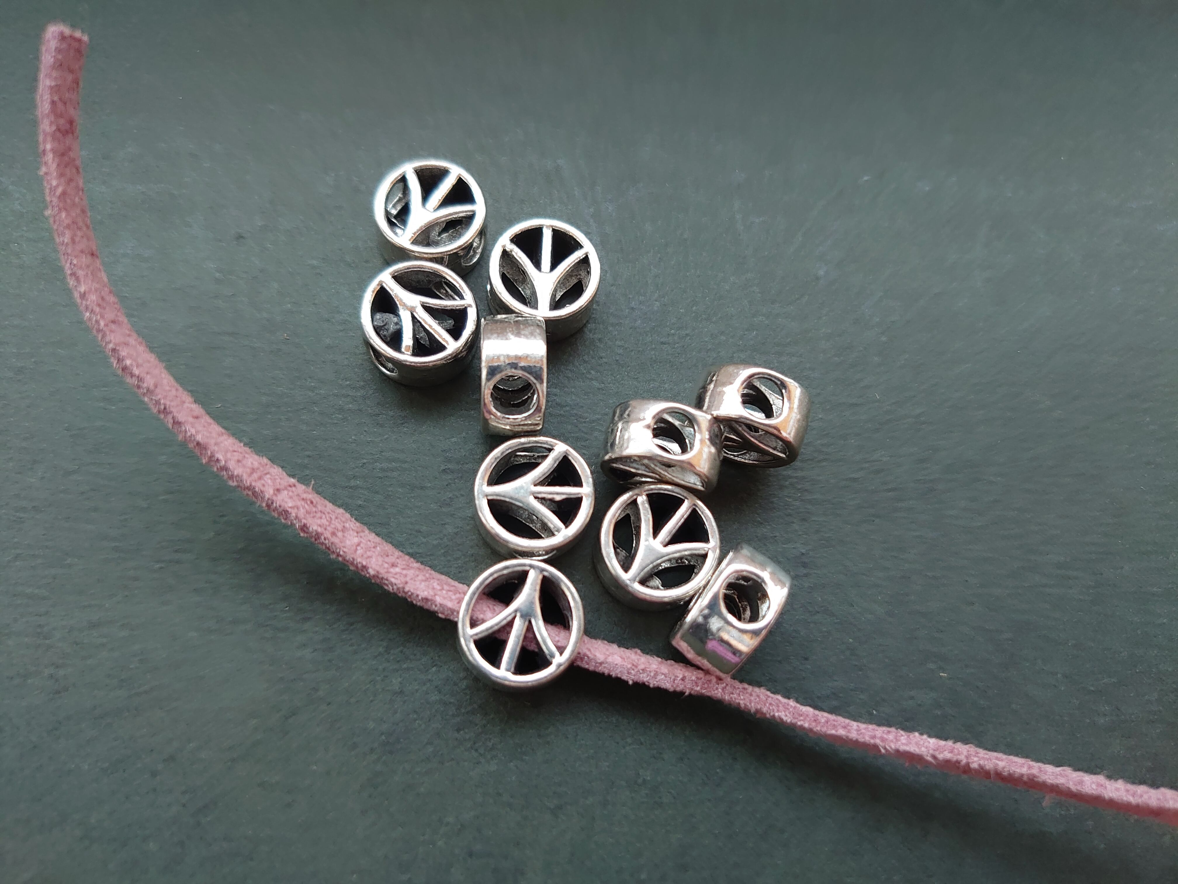 【値下げ在庫限り】合金 ピースマーク ビーズ 穴4mm ロジウム色 1個