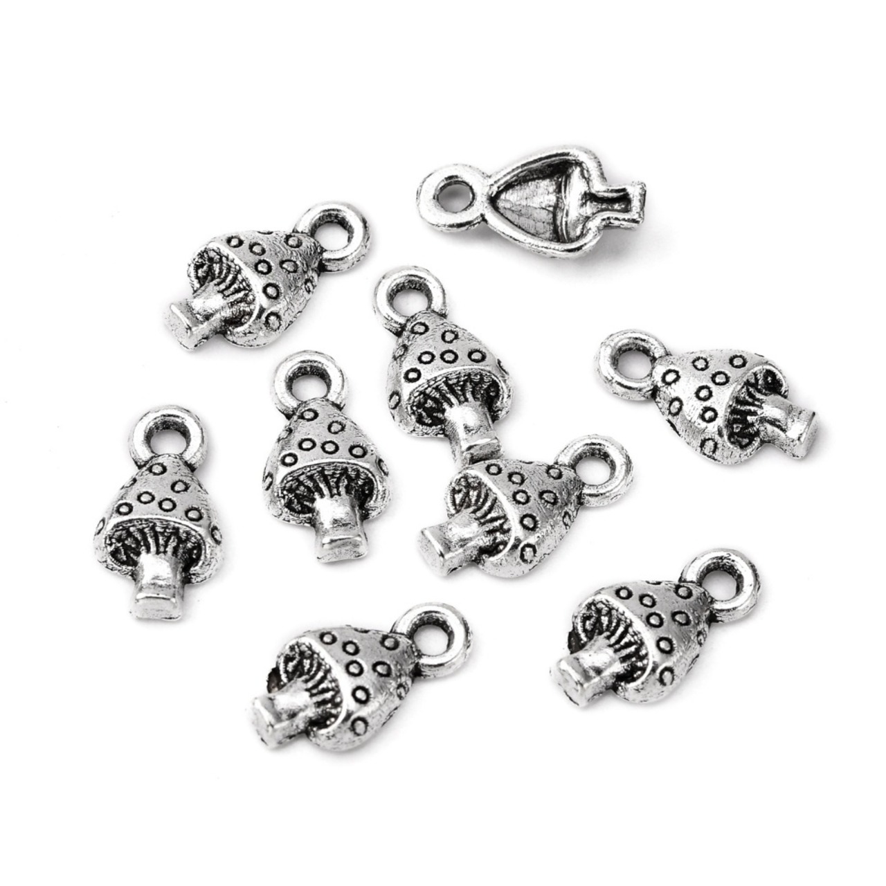 合金 キノコ チャーム アンティーク調 ロジウム色 10個