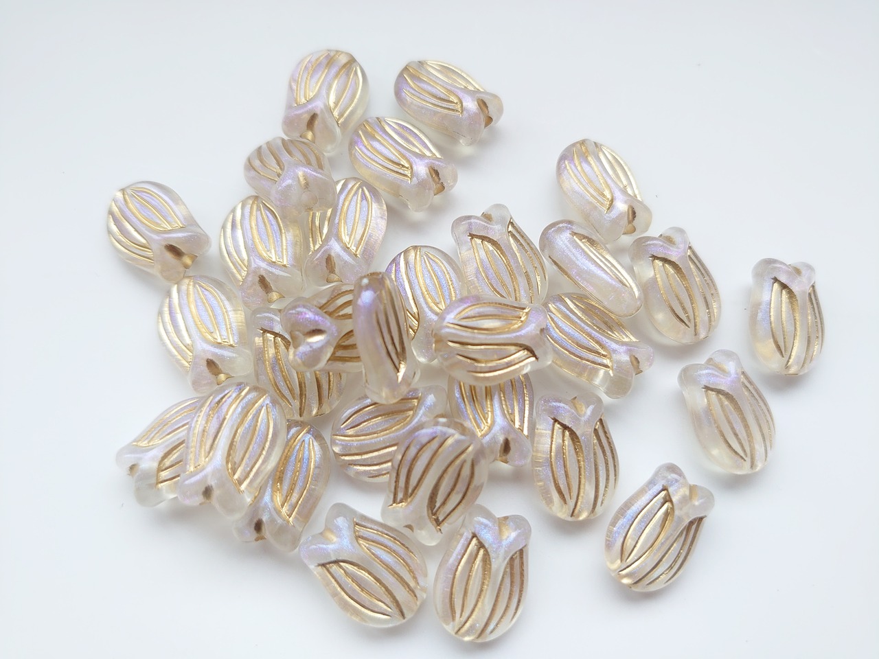 アクリル ゴールドライン アンティーク調 つぼみ フラワー グリッターラメ ビーズ 10個
