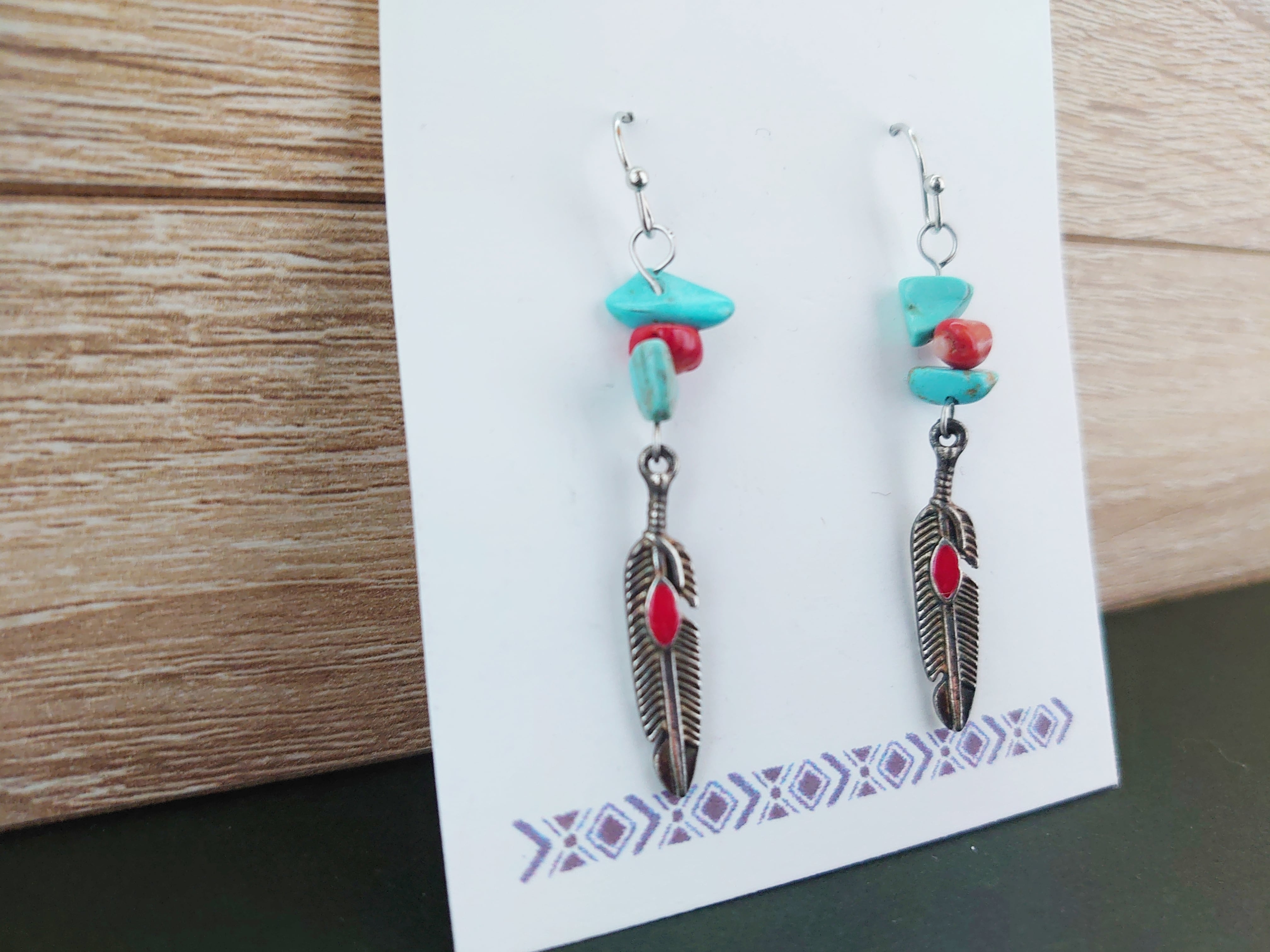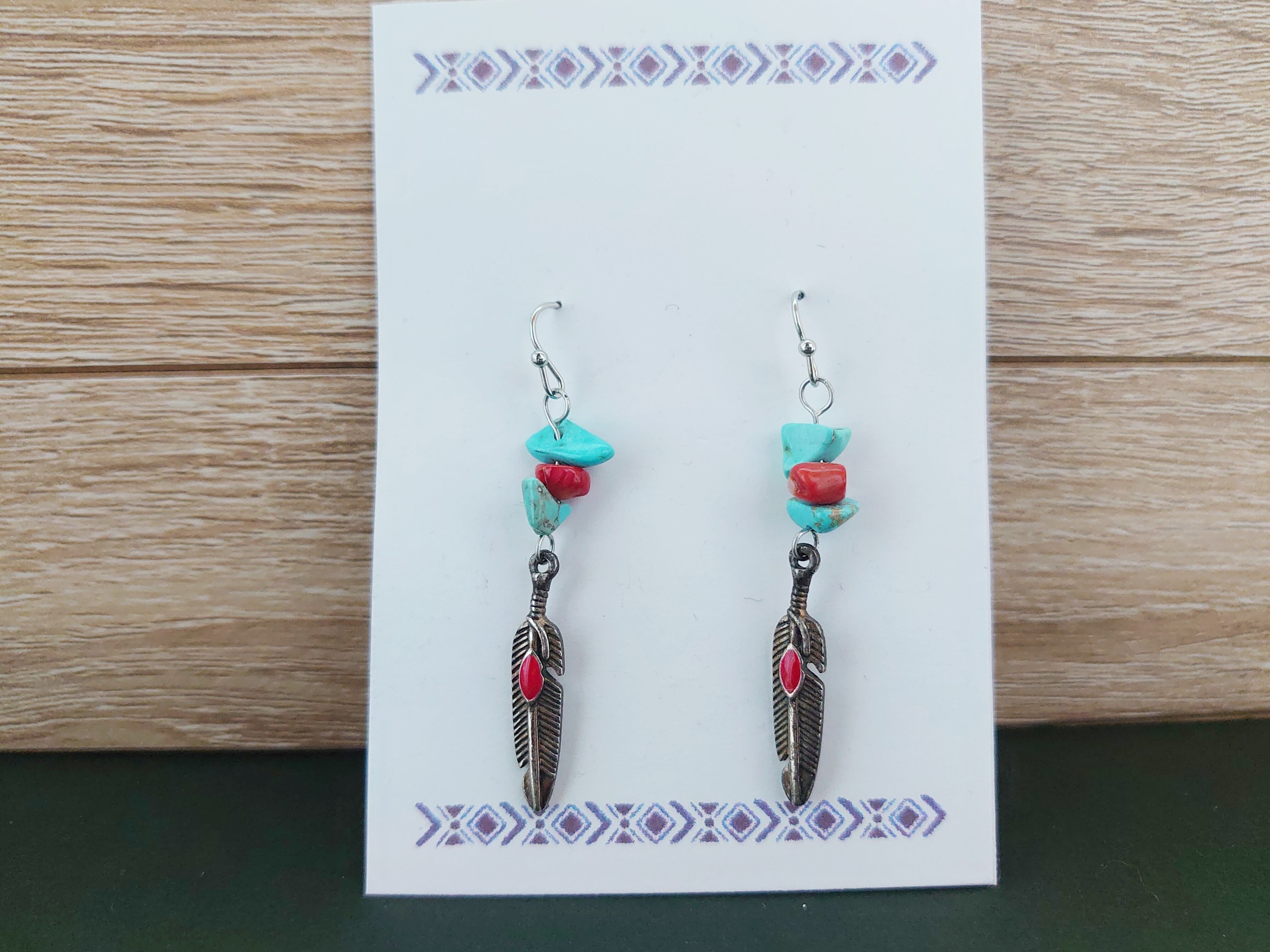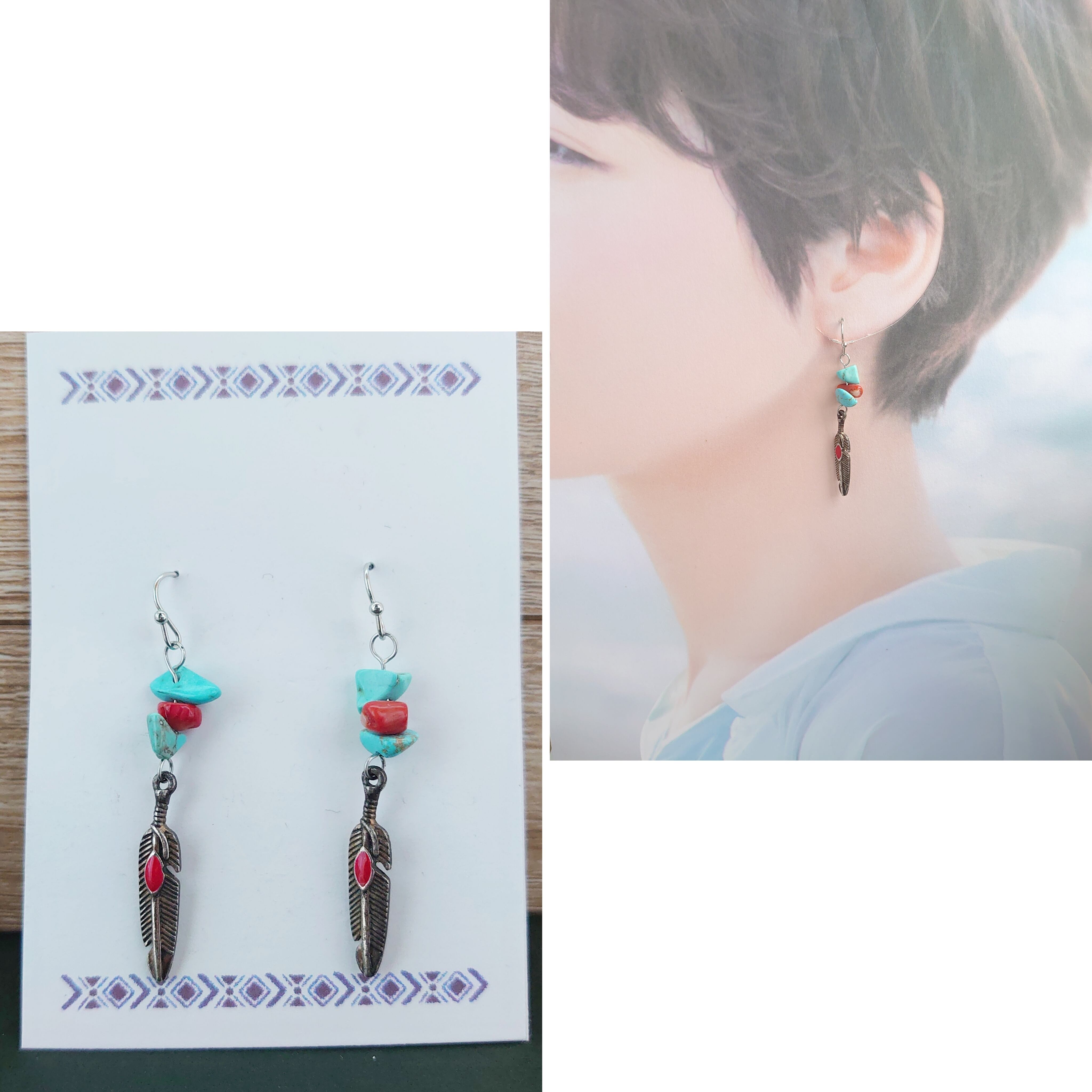 半額以下セール!羽根 フェザー ターコイズ フック ピアス / PohonhandmadeJewelry