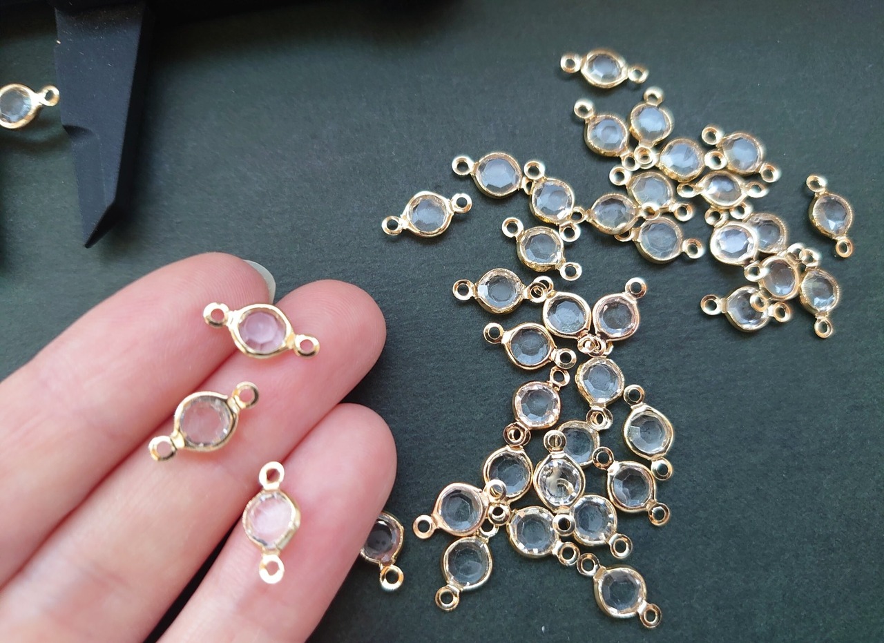 アイアン 多面カット フラットラウンド クリア コネクター 10個