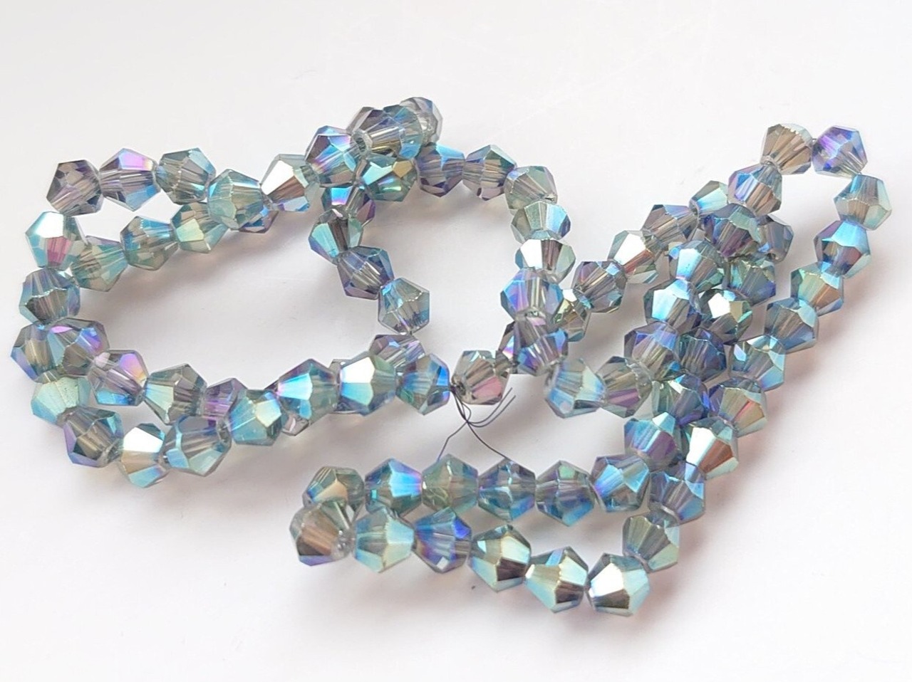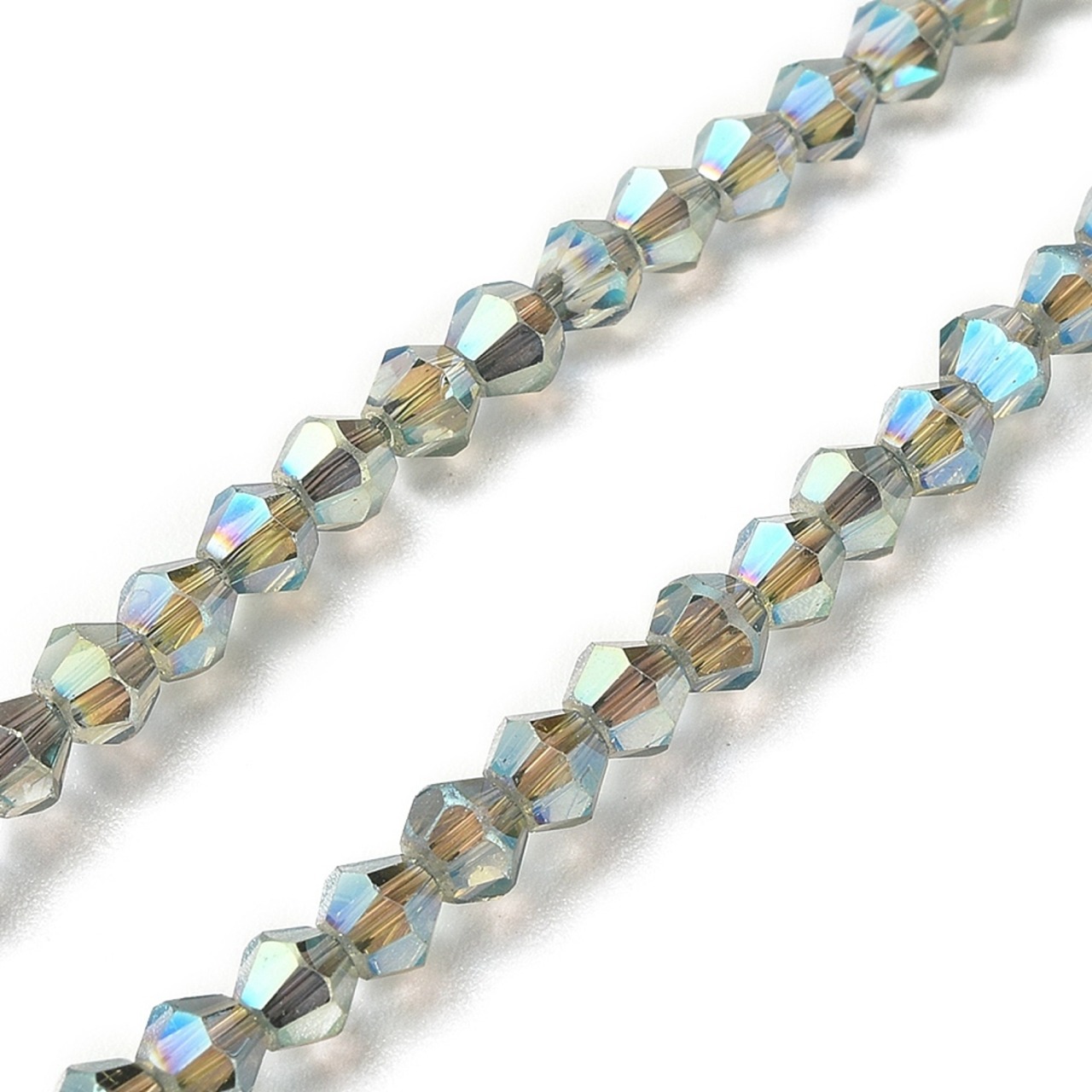 ガラス ソロバン ビーズ 4x4.5mm ミディアムシーグリーン レインボーオーロラメッキ 40個