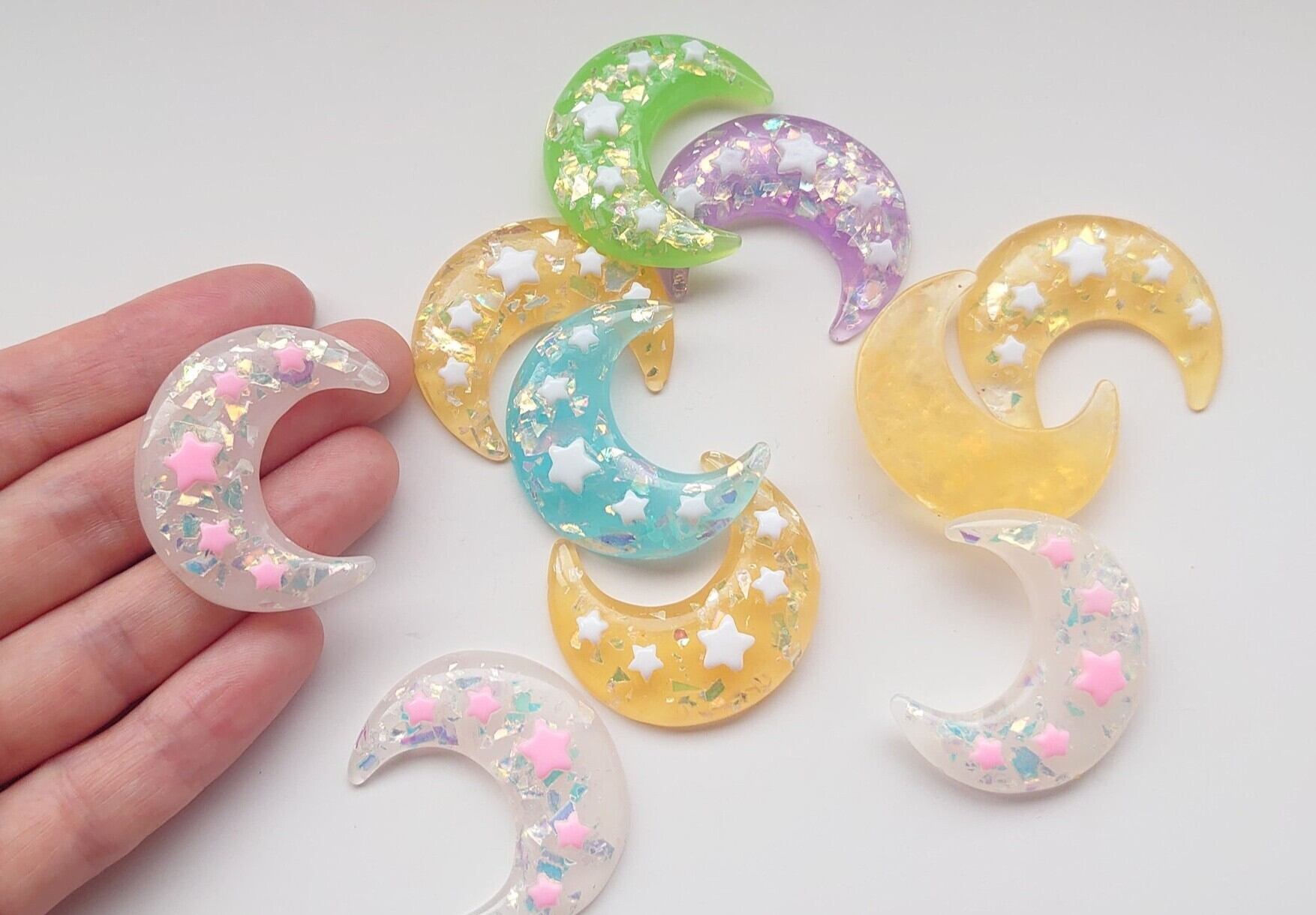 樹脂 キラキラ入り ぷっくりスター付き 月 カボション ミックスカラー 1個
