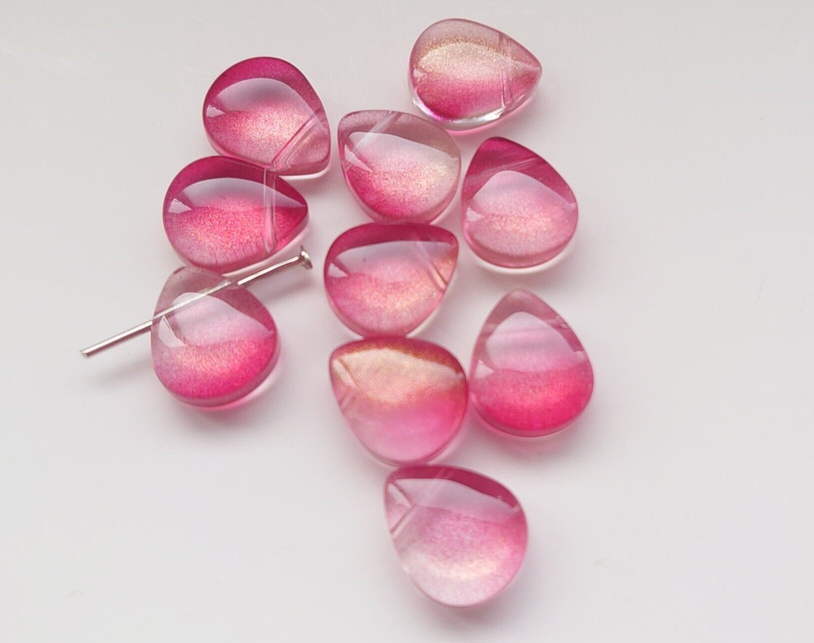 ガラス グリッターパウダー しずく 横穴 ビーズ レッド系 5個