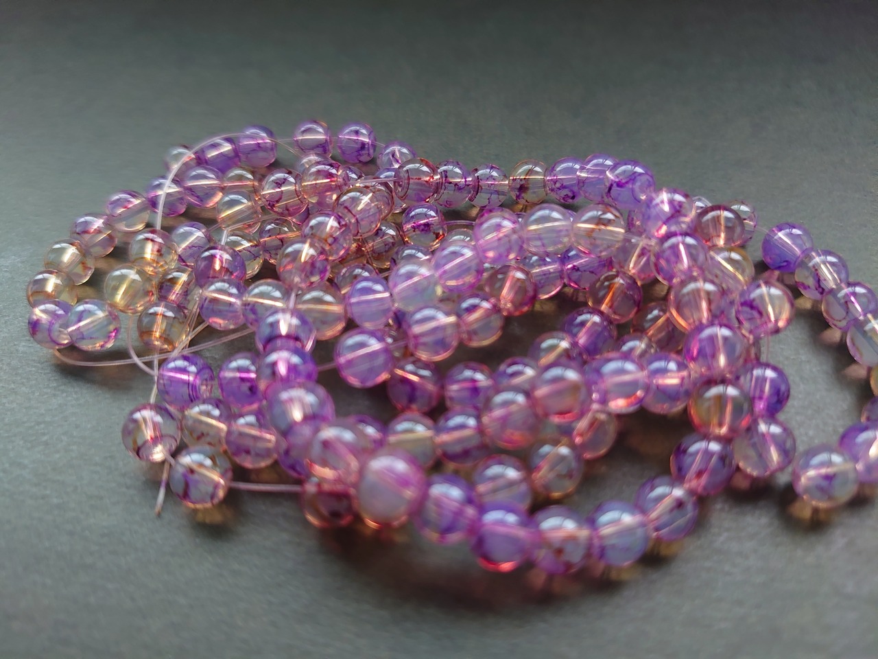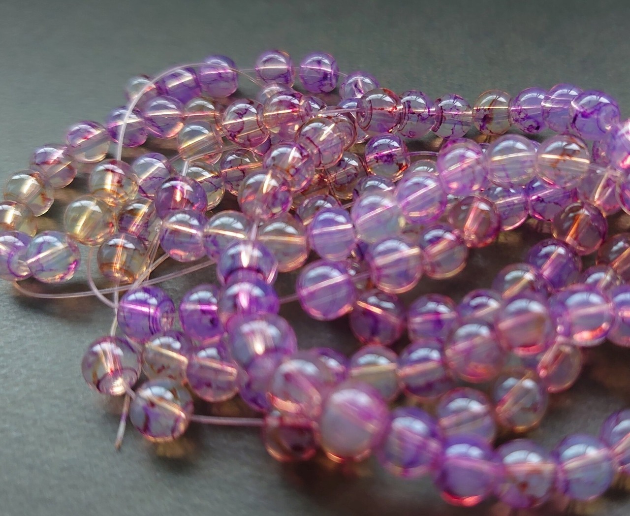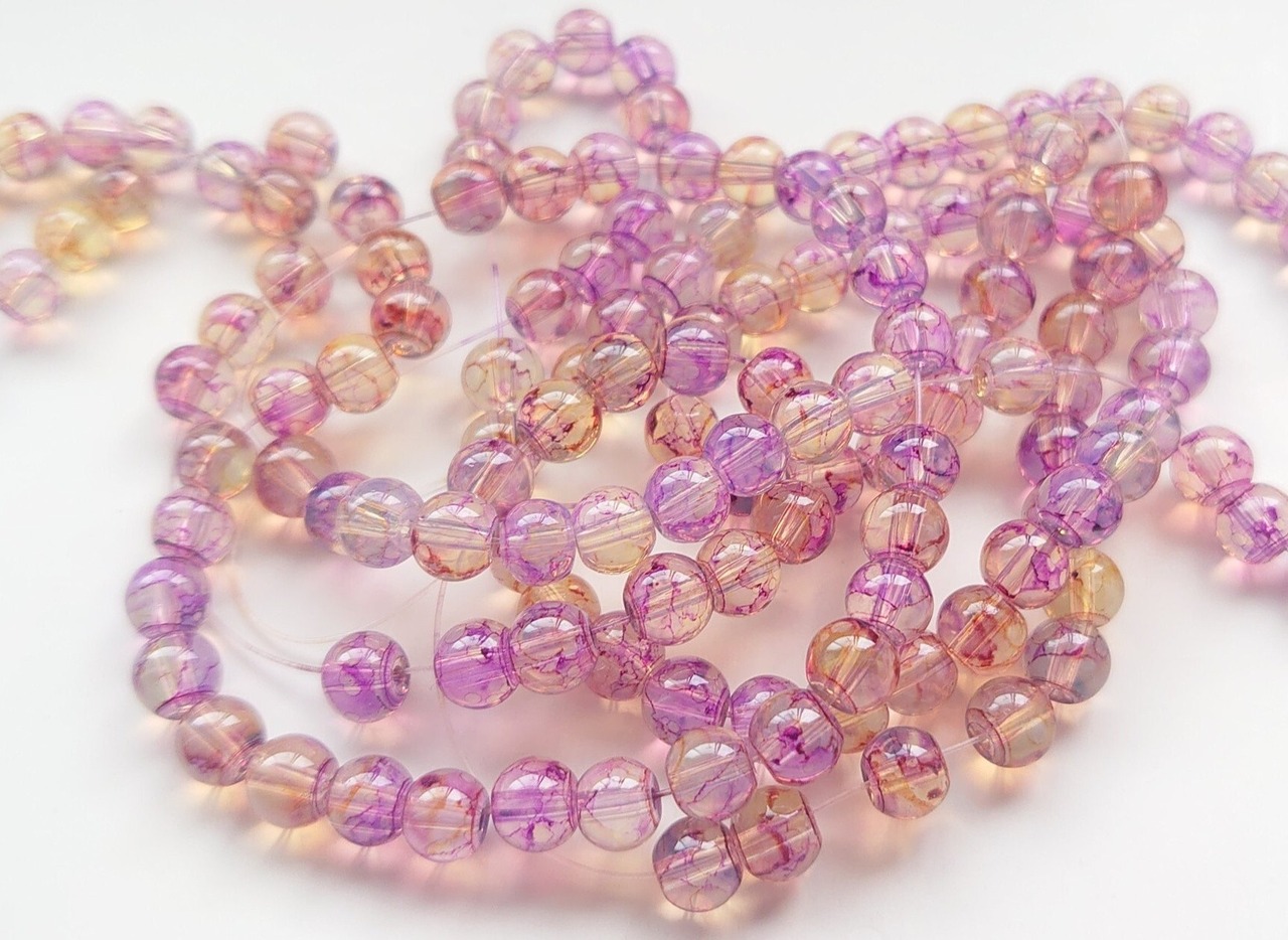 【値下げ在庫限り】ガラス ラウンド ビーズ パープル × イエロー 6mm 20個