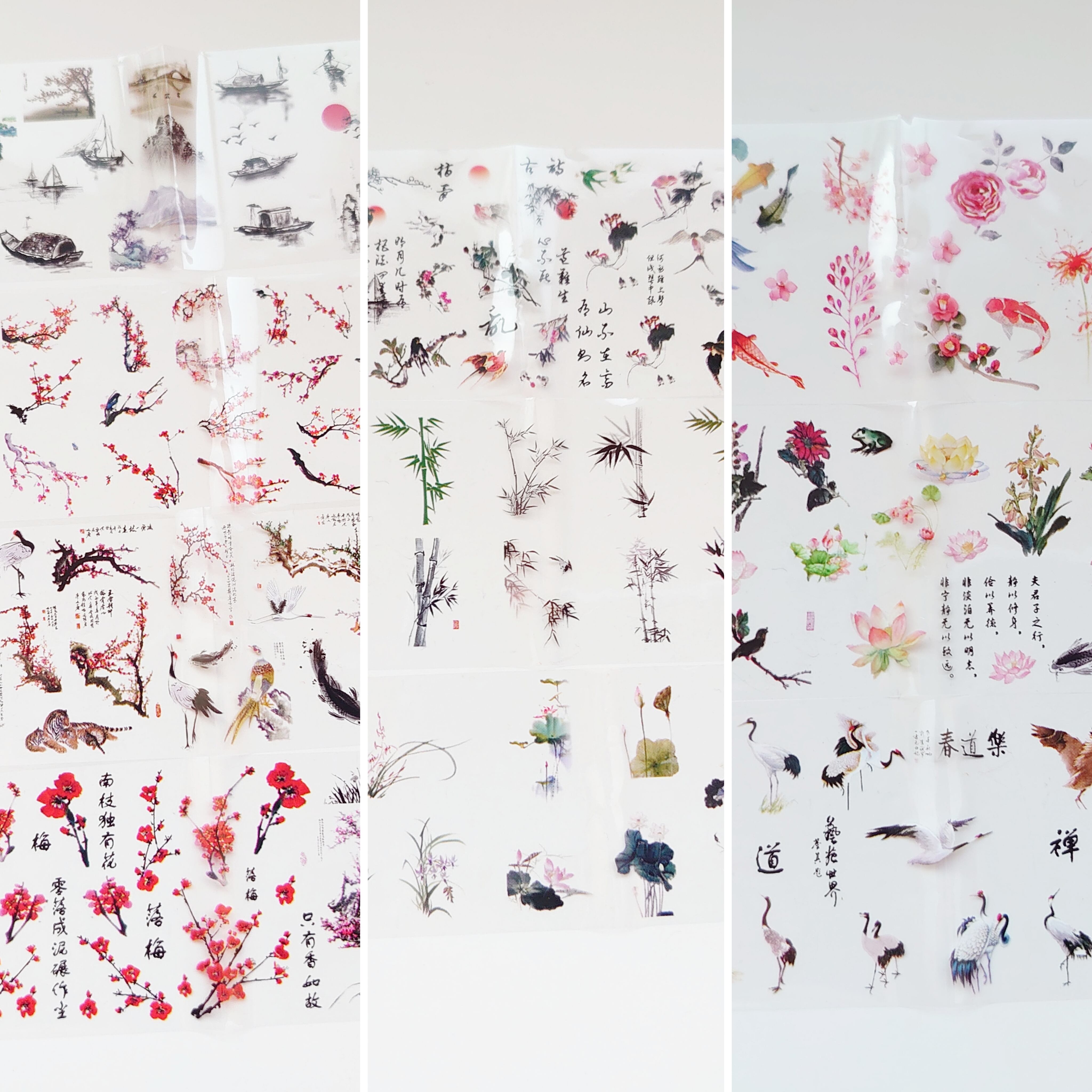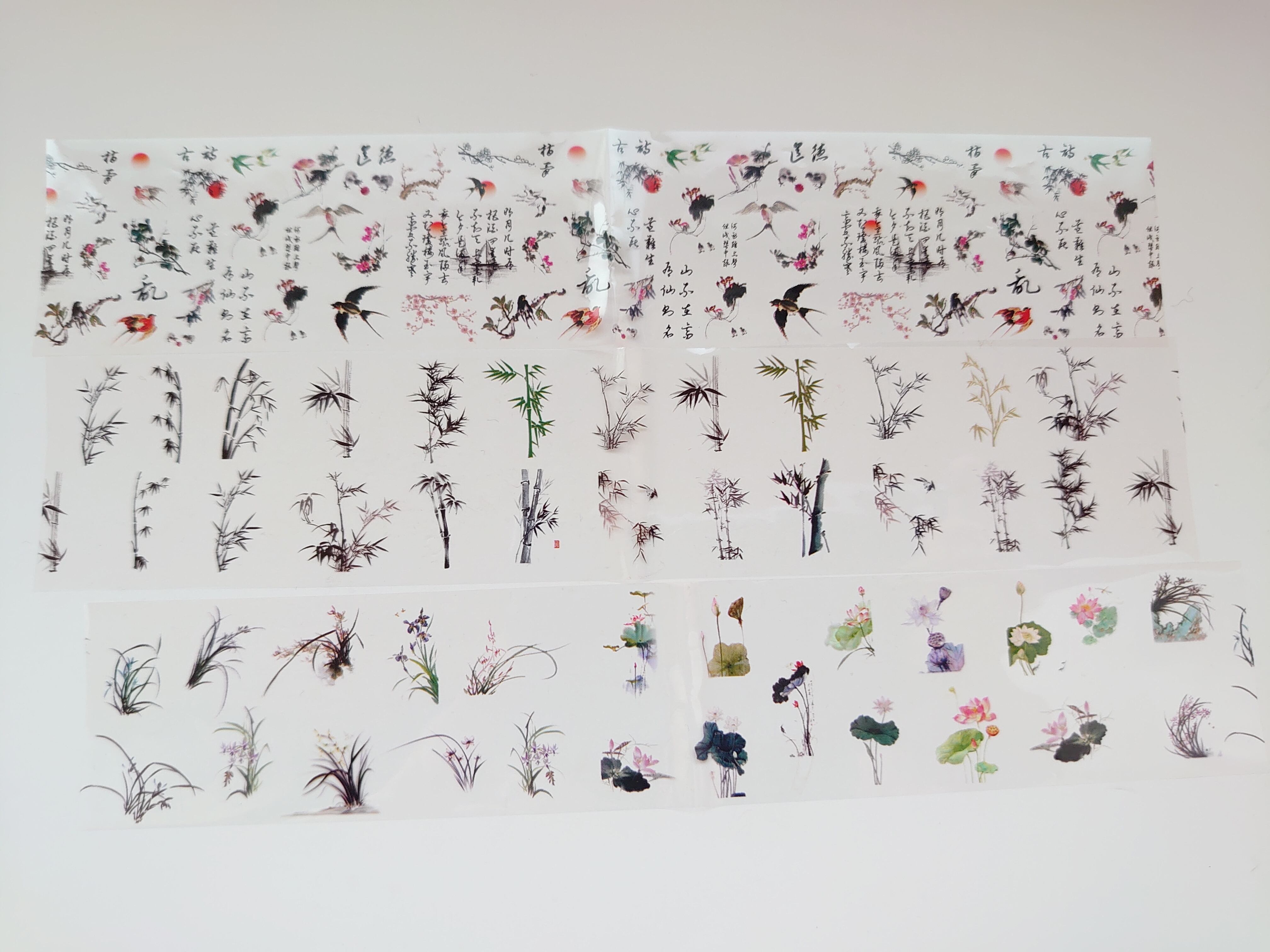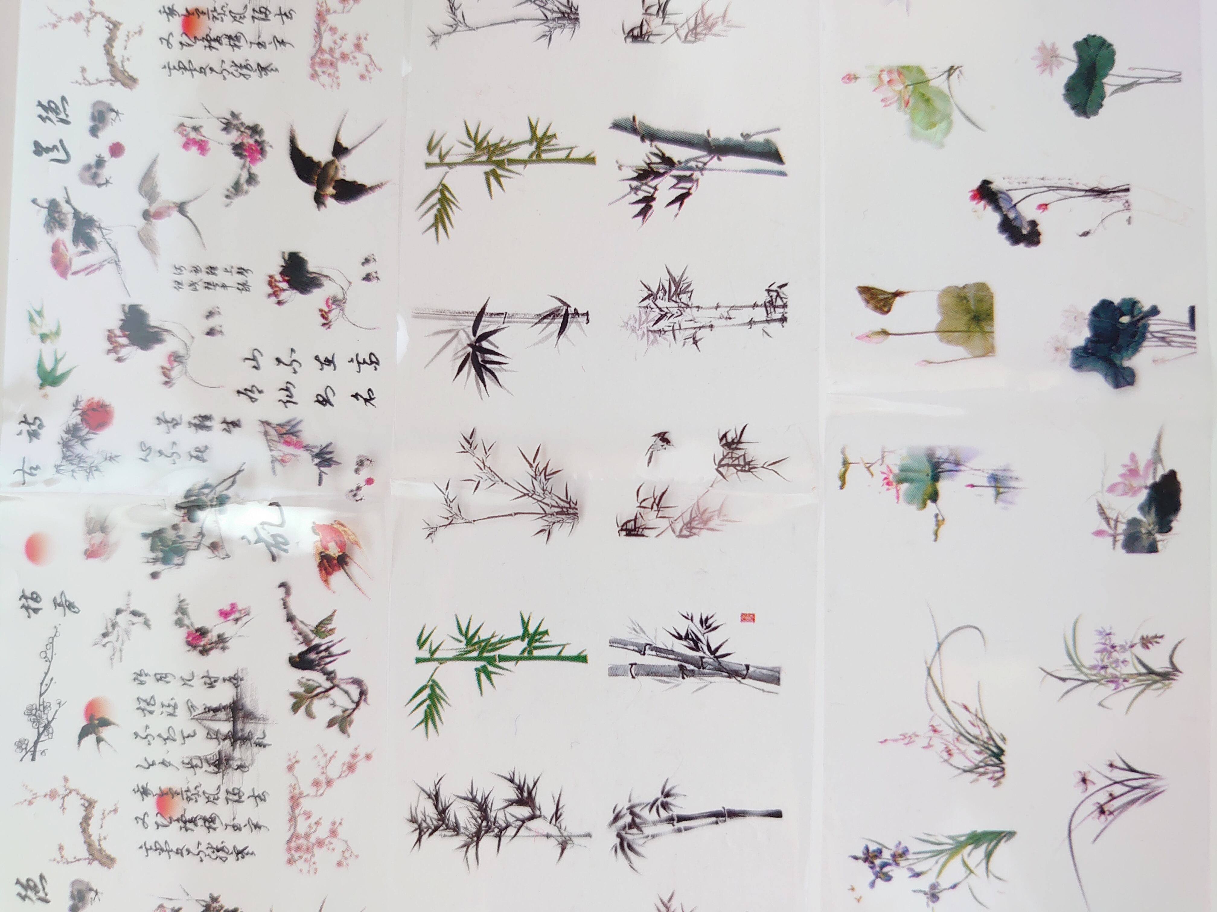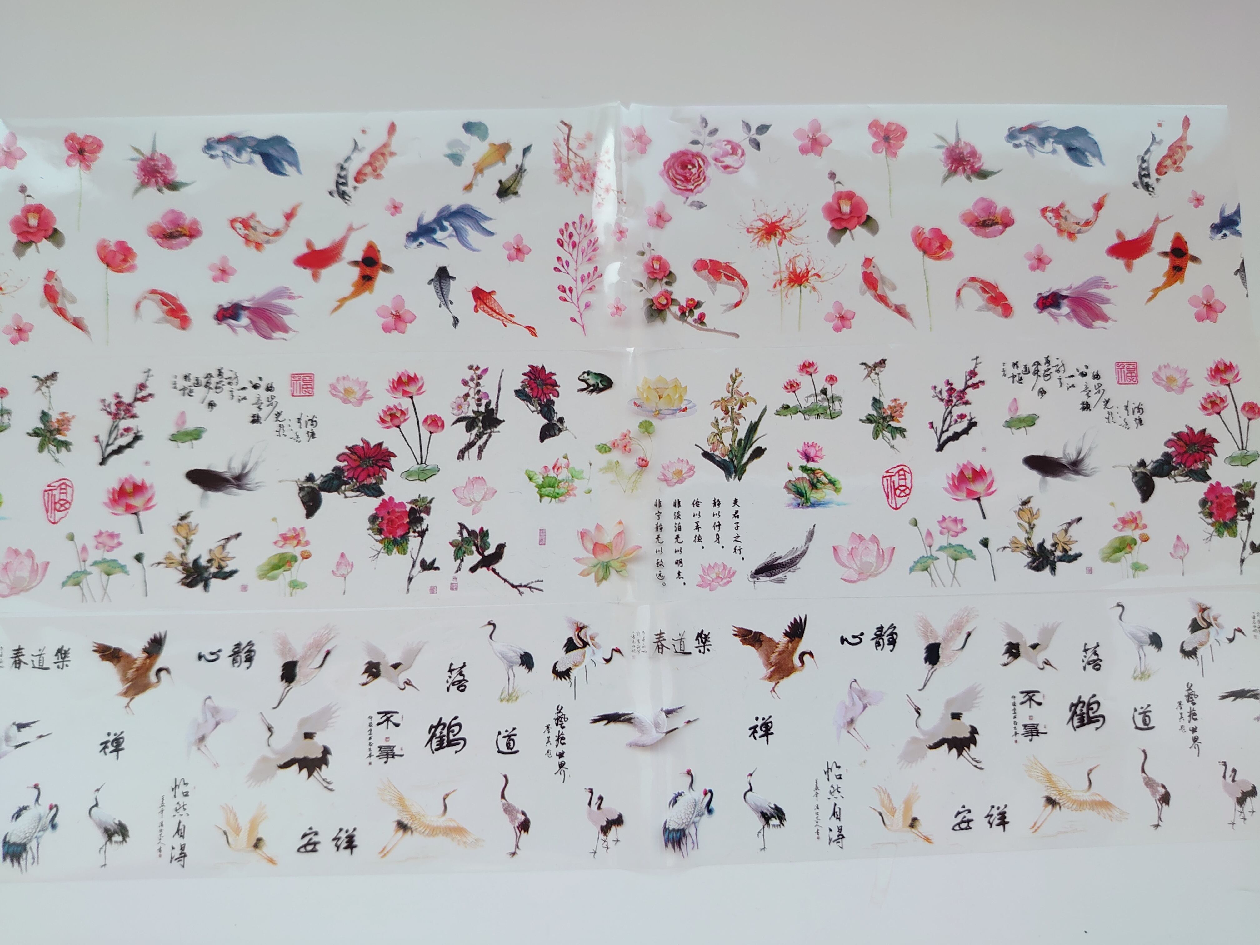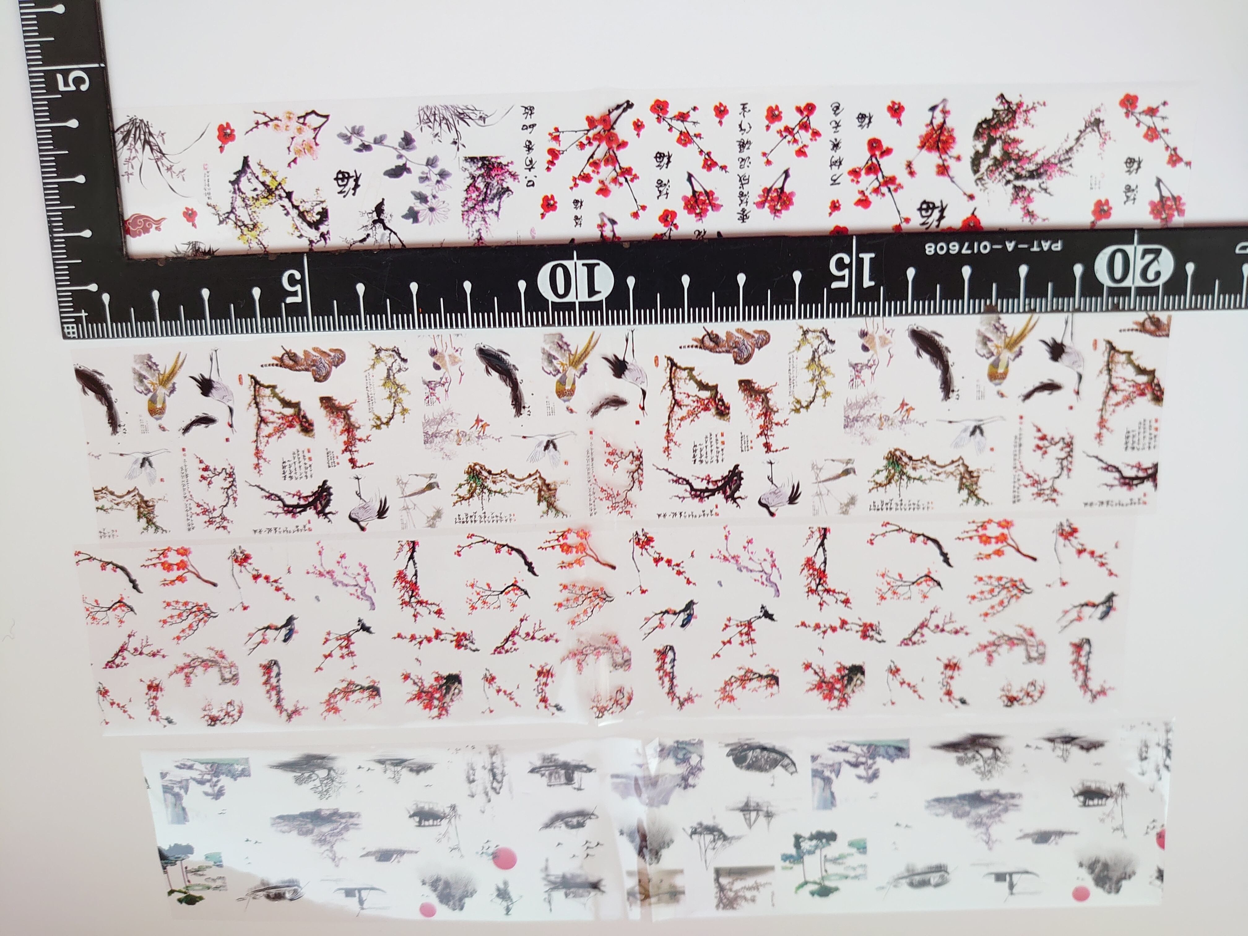 ネイル フィルム 和柄 中国語 鶴 梅 竹 鯉 蓮 デザインミックス 2枚