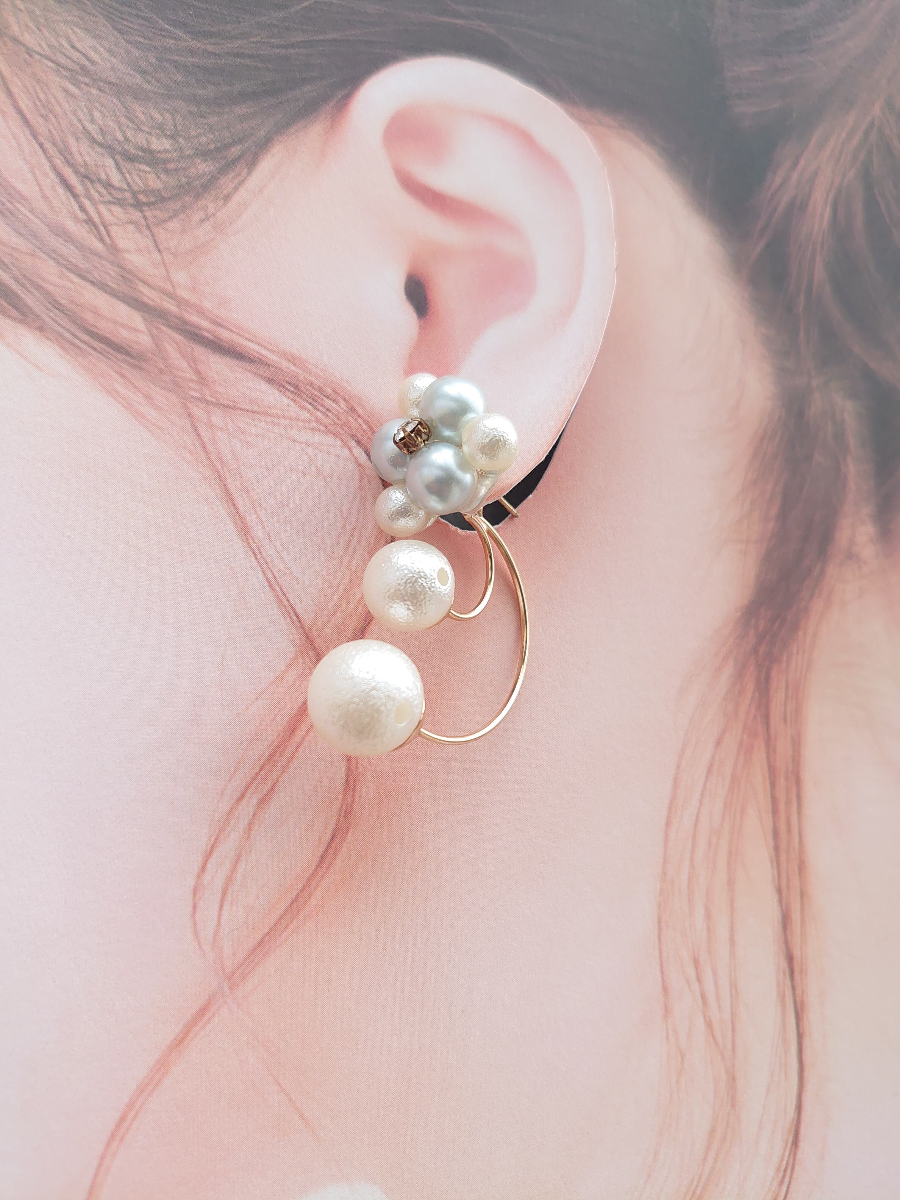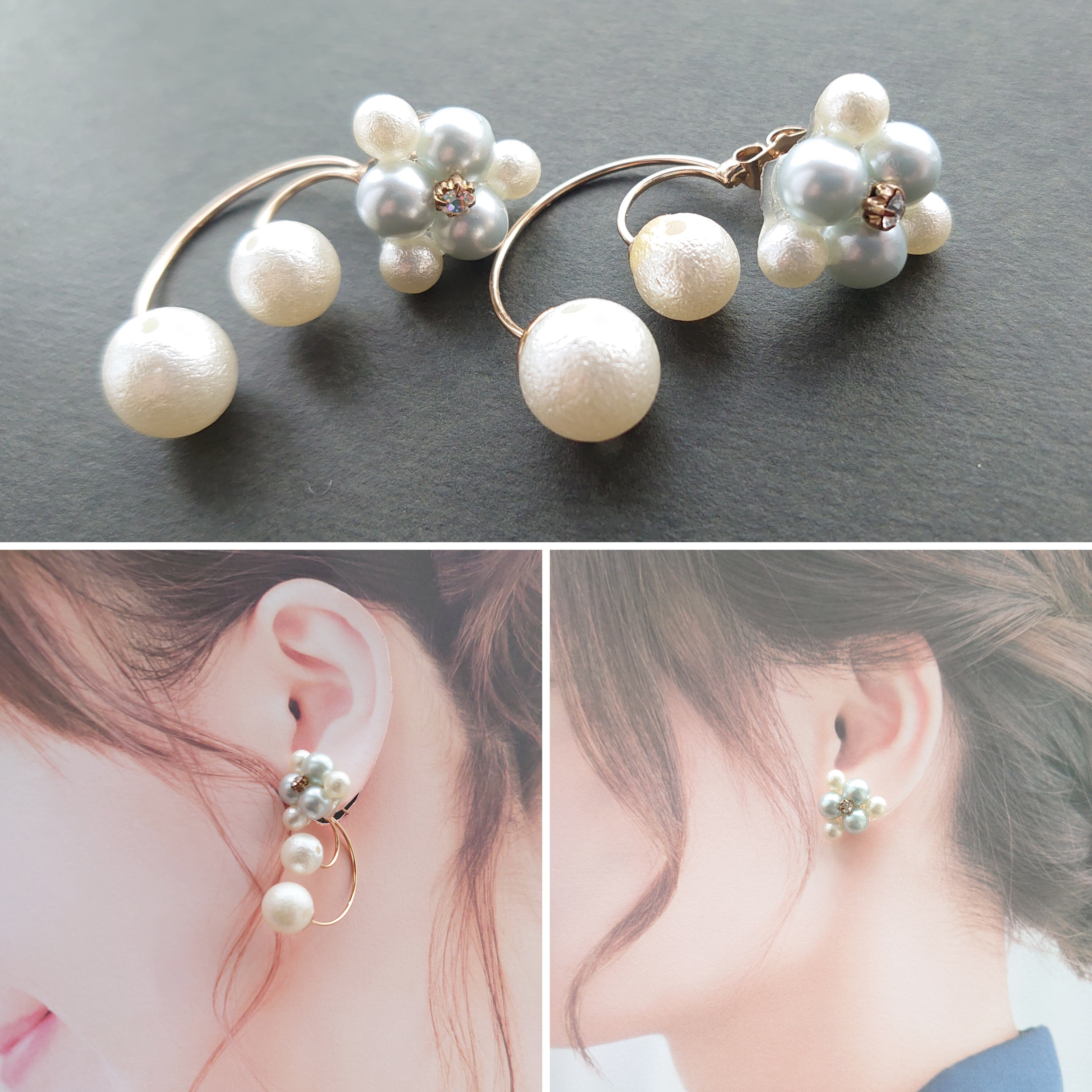 パールセット 樹脂パール バックキャッチ ピアス 2WAY [F-209]momoruka