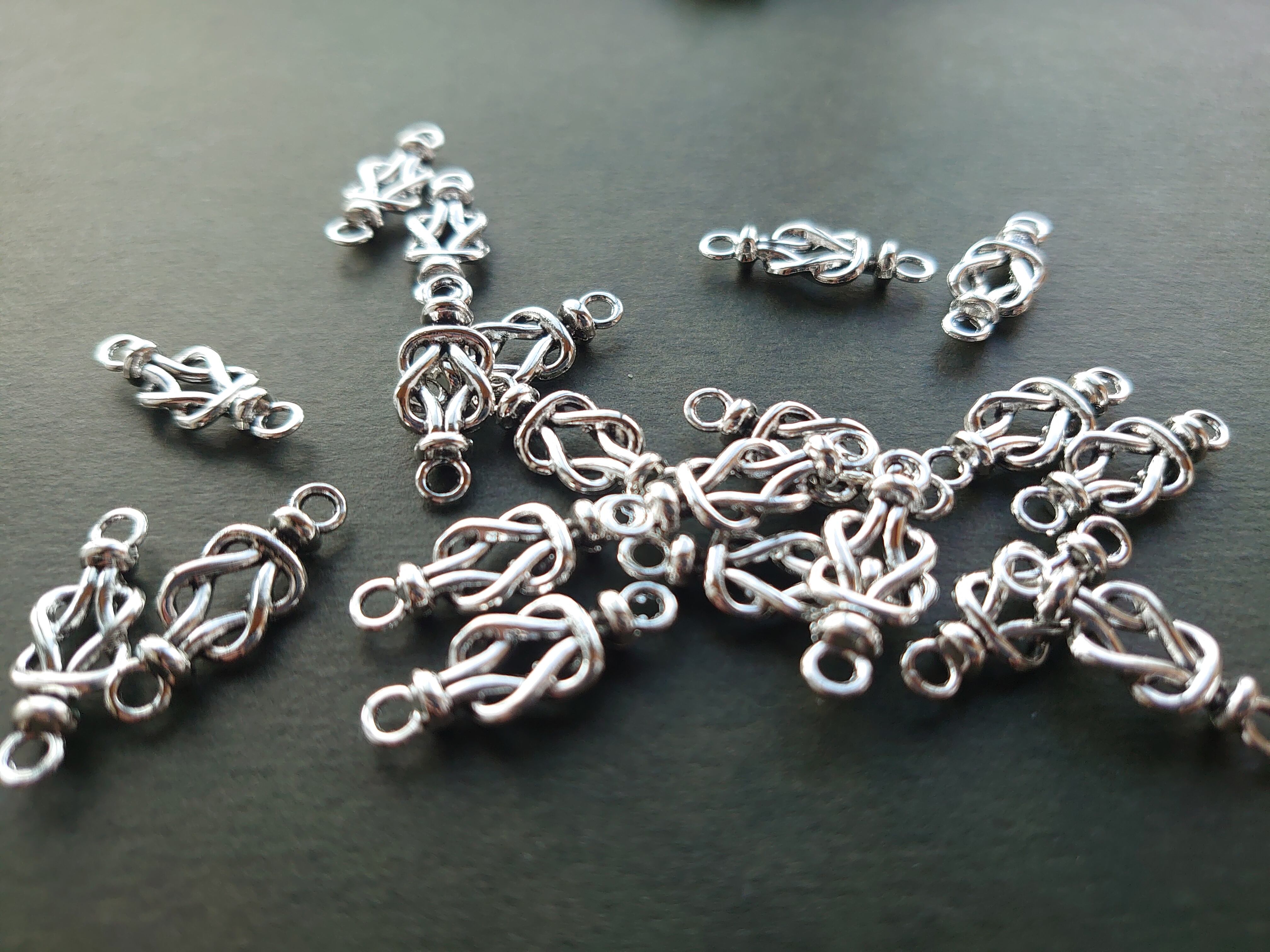 合金 結び目 コネクター アンティーク調 ロジウム色 4個