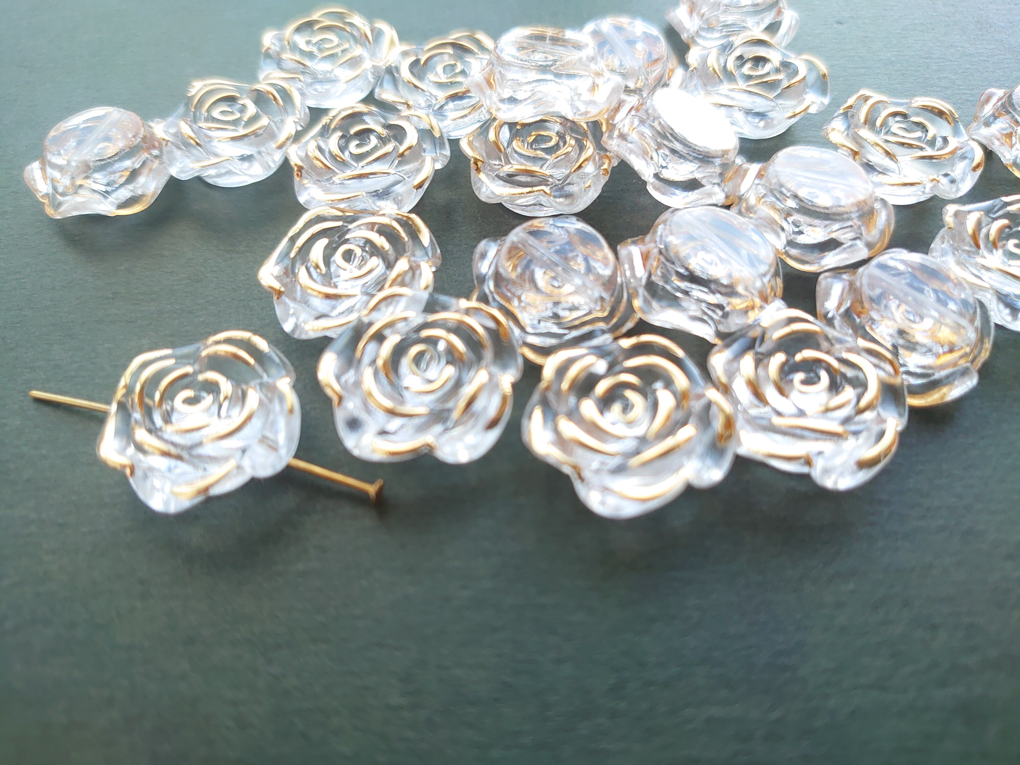 アクリル フラワー ビーズ クリア ゴールドライン 5個