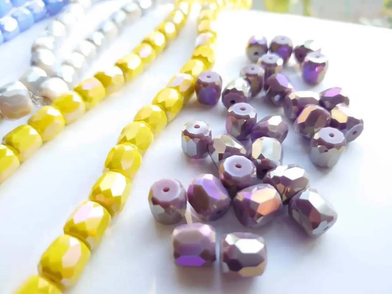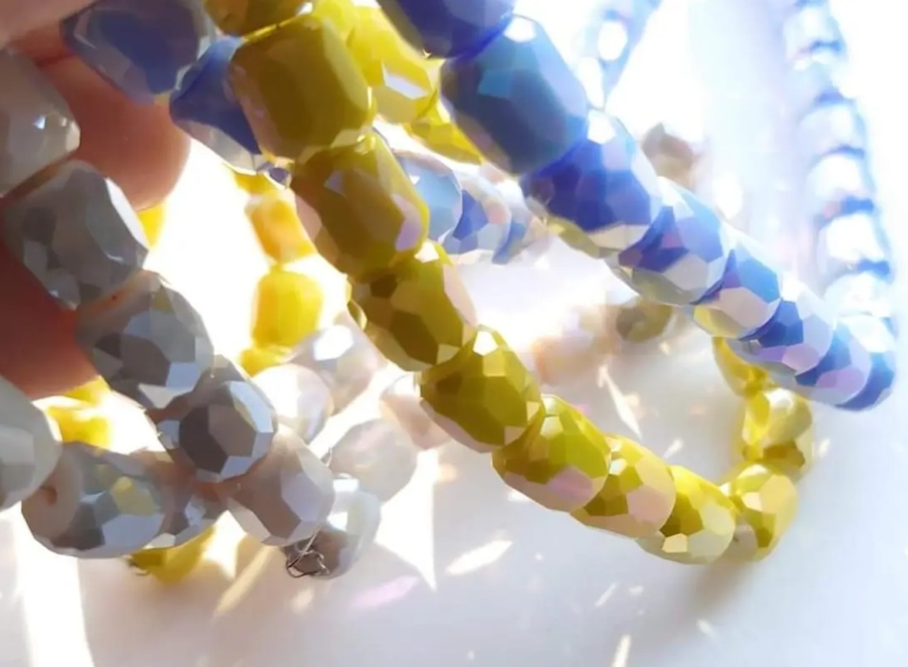 【値下げ在庫限り】ガラス 円柱 多面カット ビーズ 2個