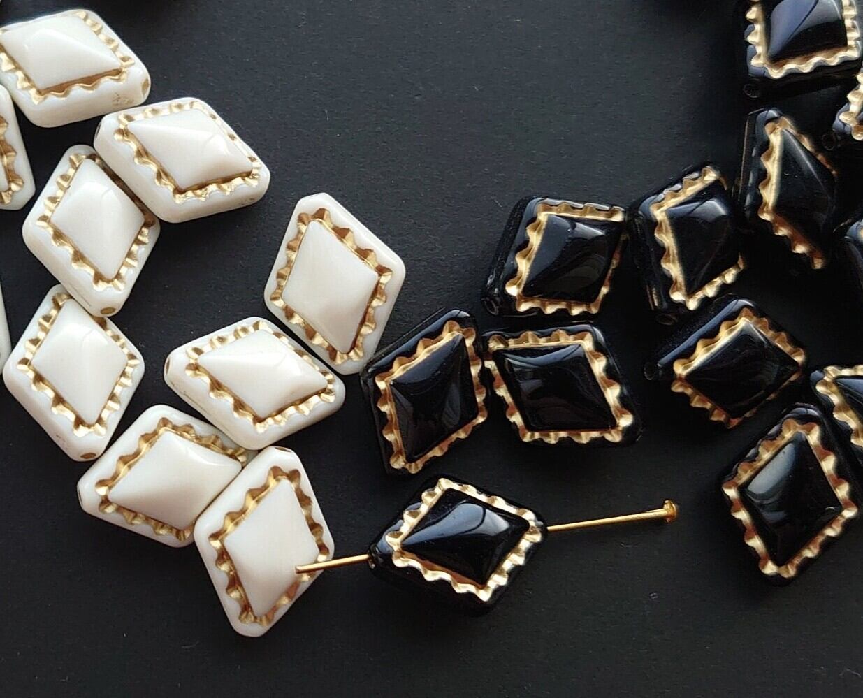 アンティーク調 ゴールドライン ひし形 ビーズ アクリル10個