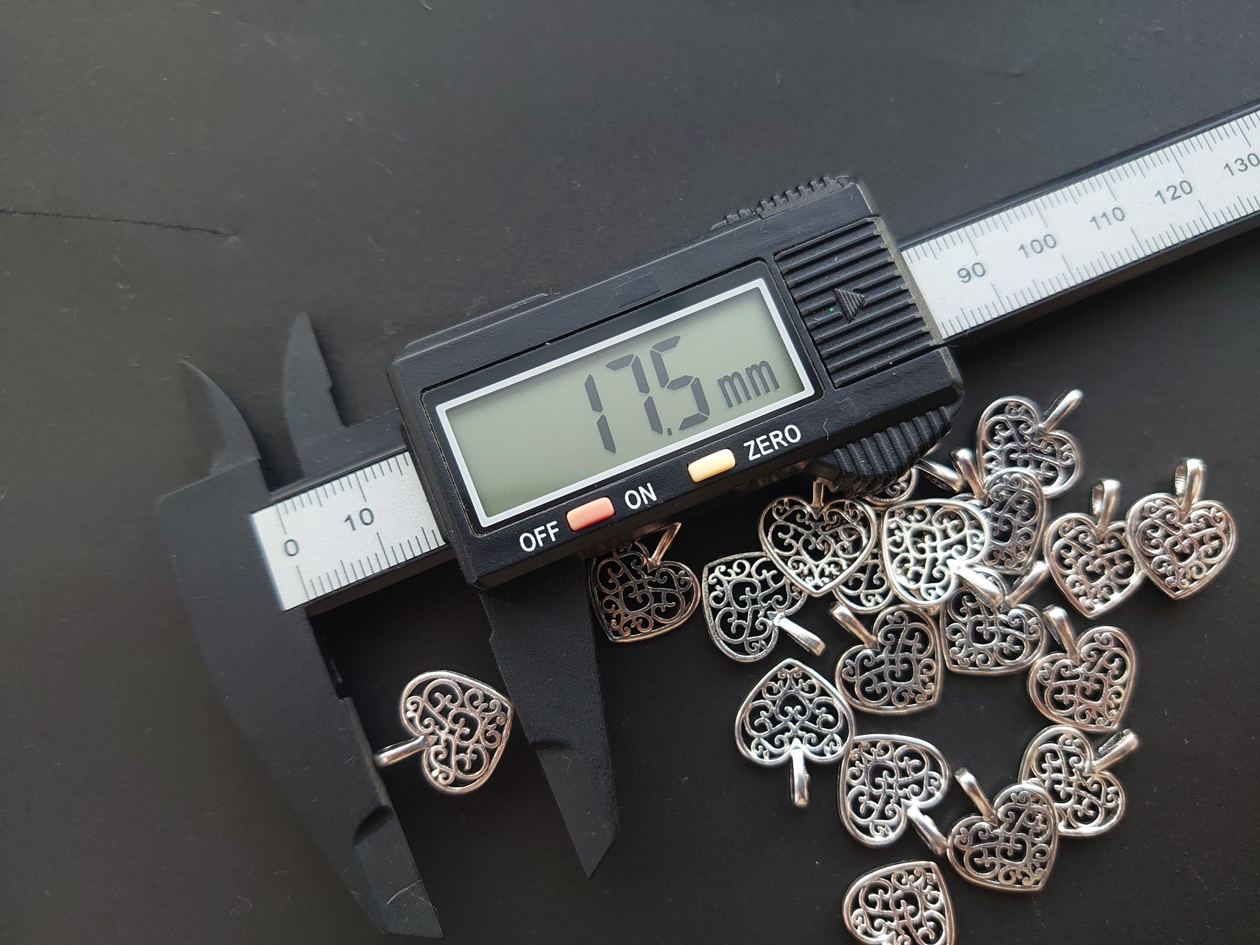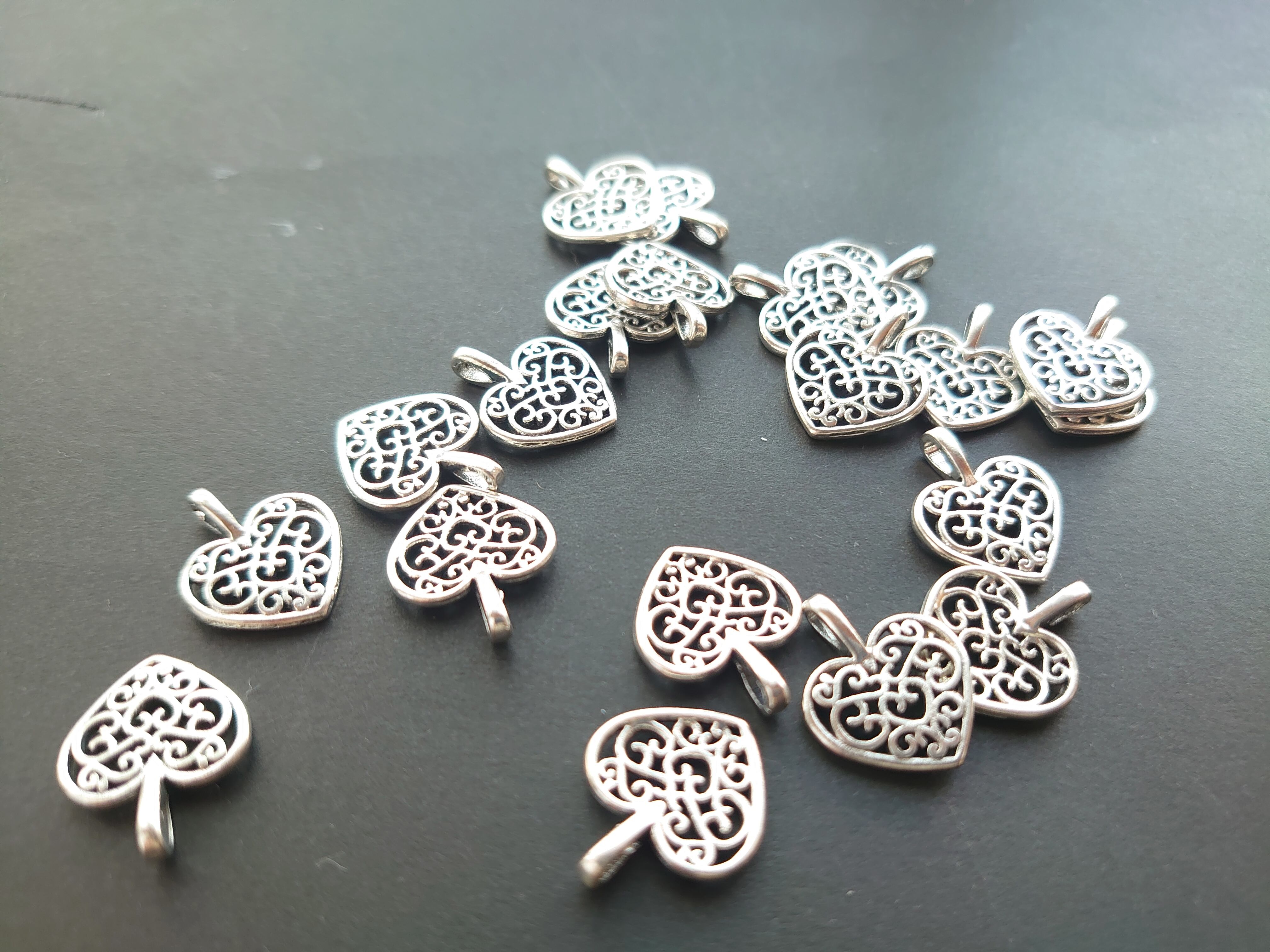 【値下げ在庫限り】透かし ハート ペンダントトップ アンティーク調ロジウム色 合金 10個