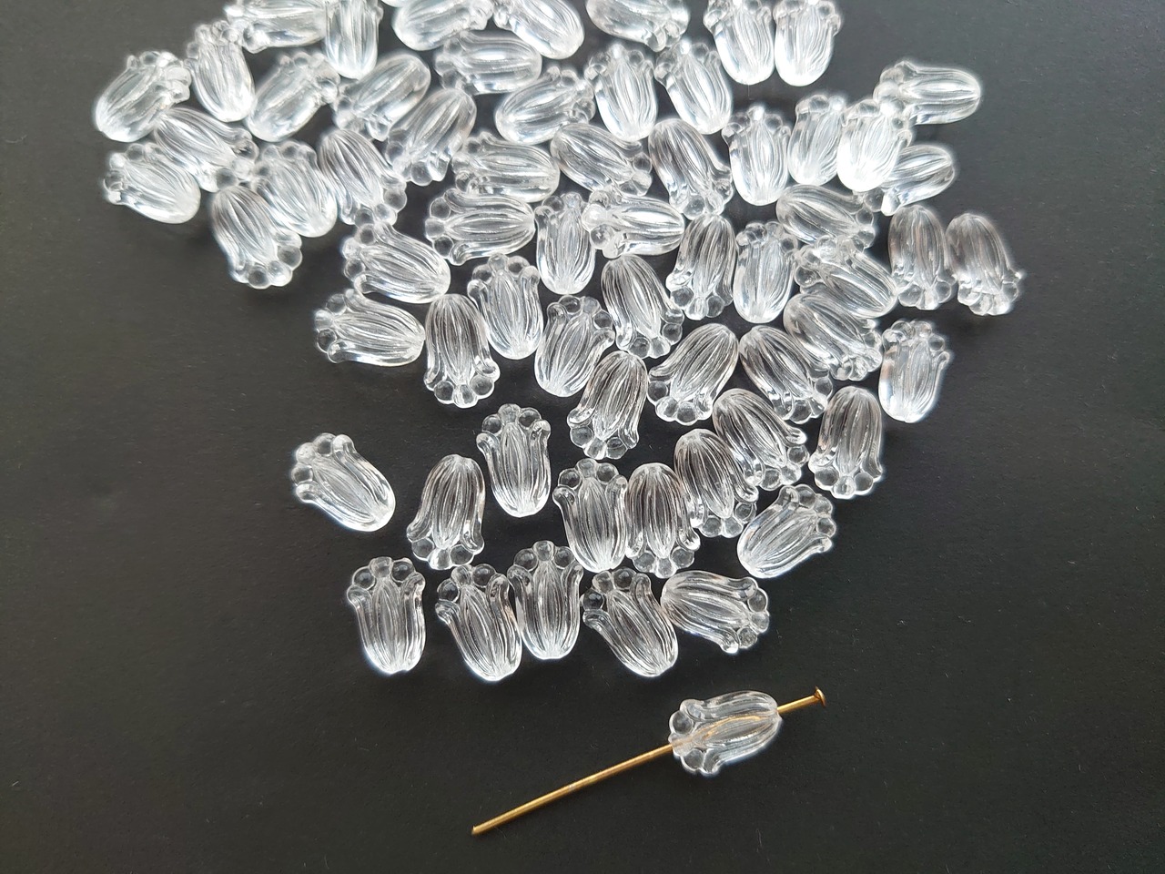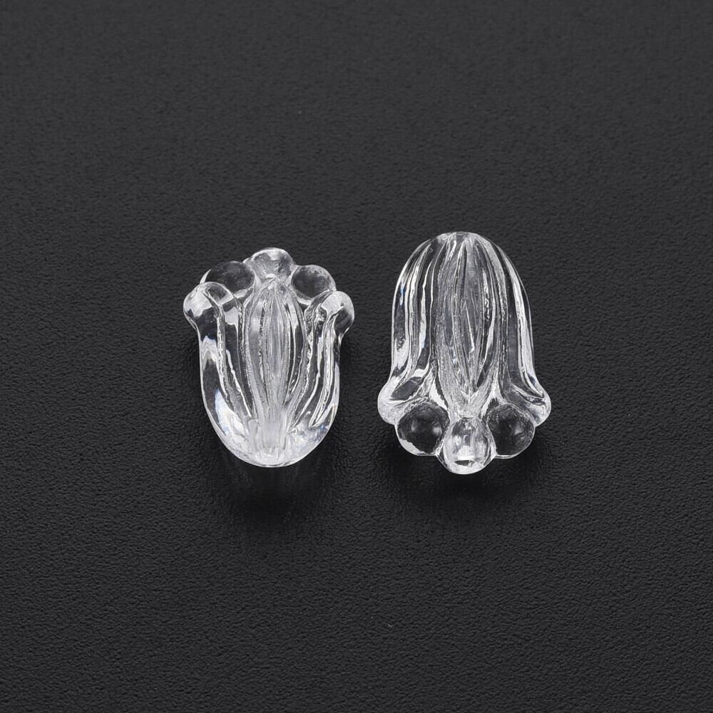 オーバル フラワー ビーズ クリア アクリル 12x8x5.5mm 20個