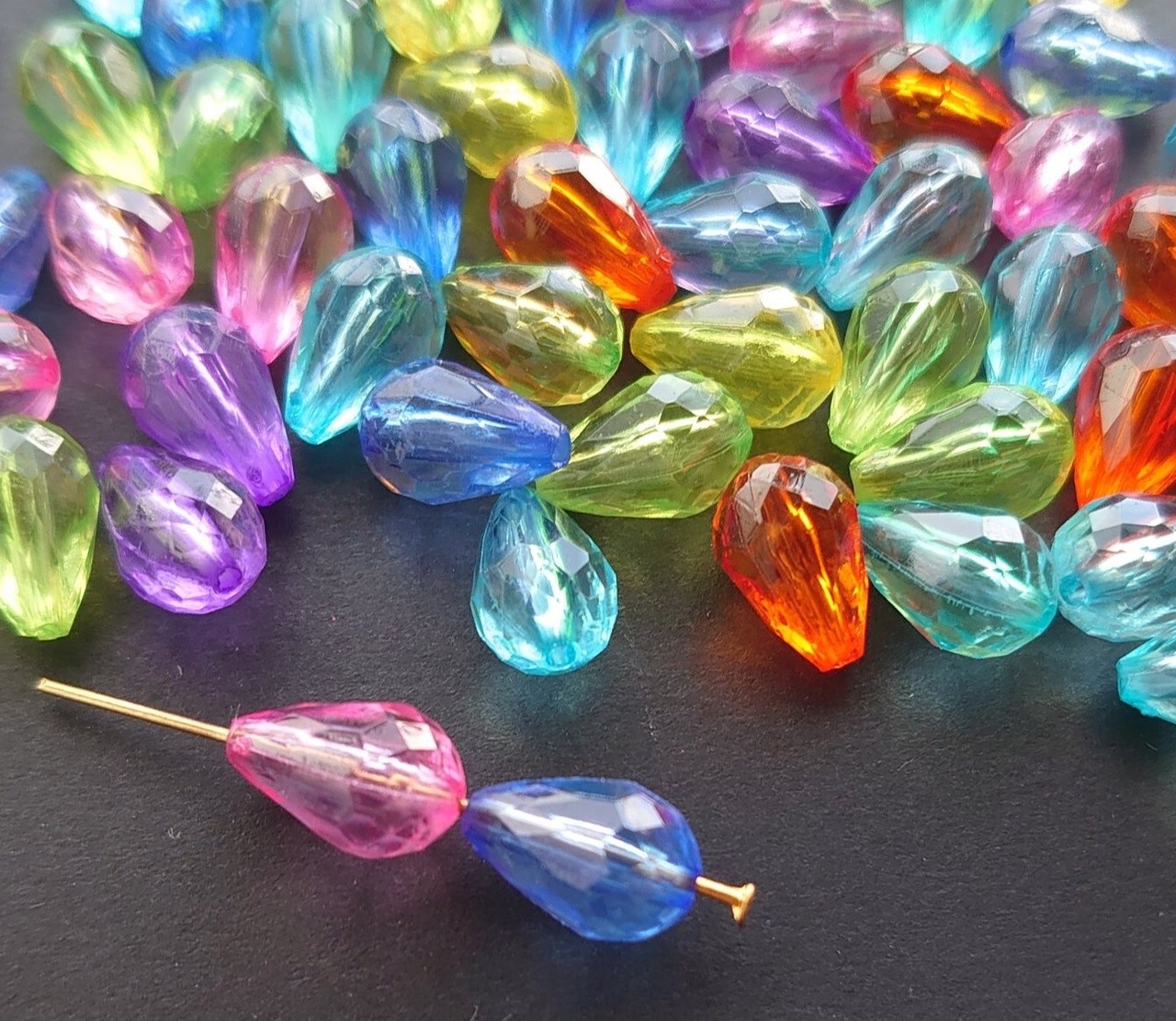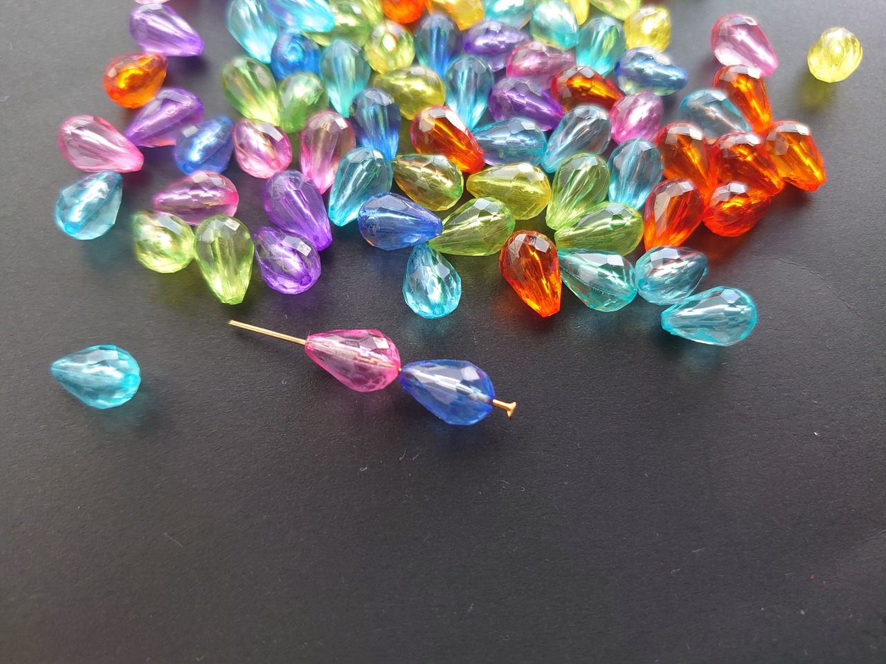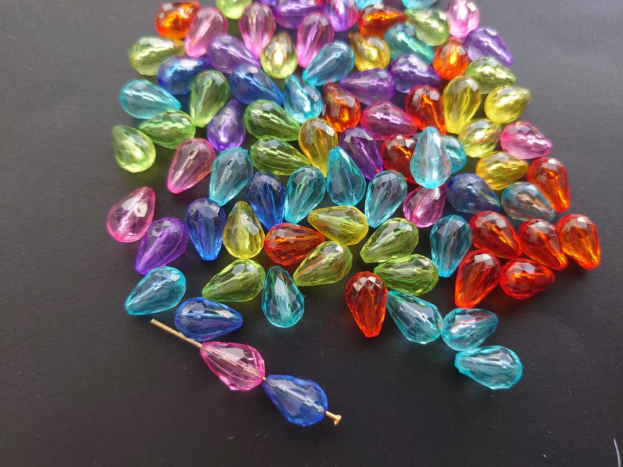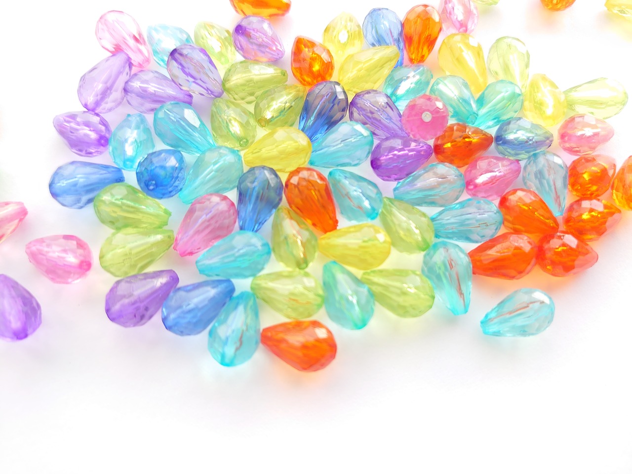アクリル しずく ビーズ 多面カット ミックスカラー 20個