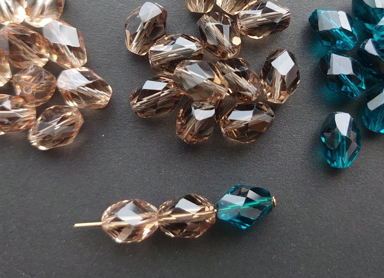 グレードAAA ガラス ビーズ オーバル ソロバン ひねり 多面カット 2個