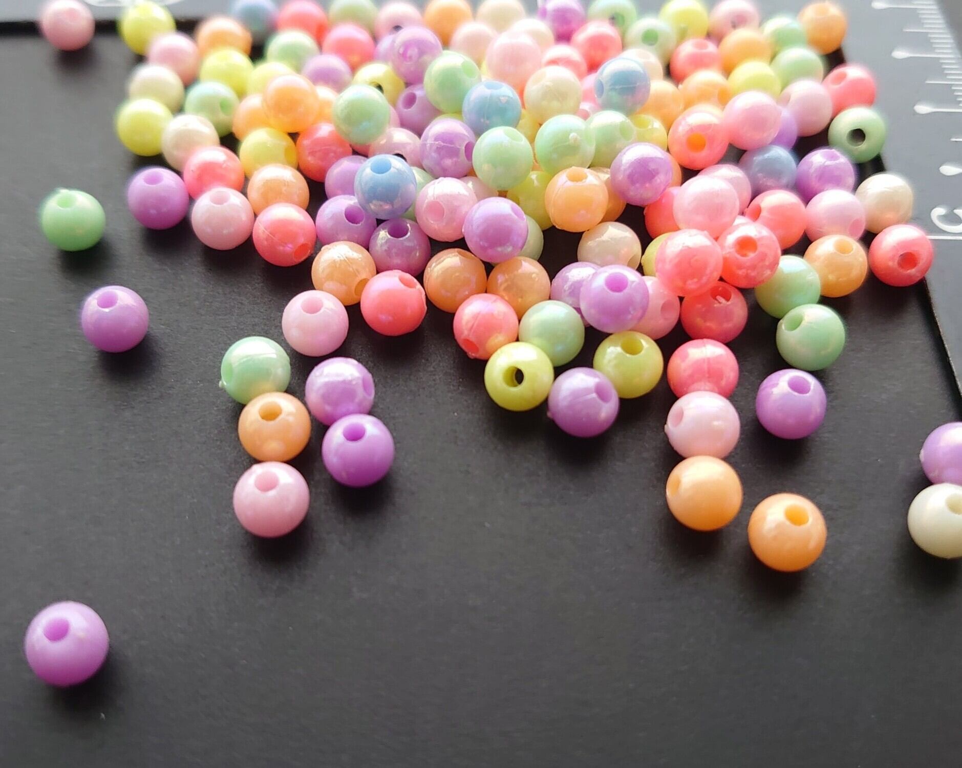 アクリル ラウンド ビーズ 6mm オーロラ パステルカラー ミックスカラー 約50個