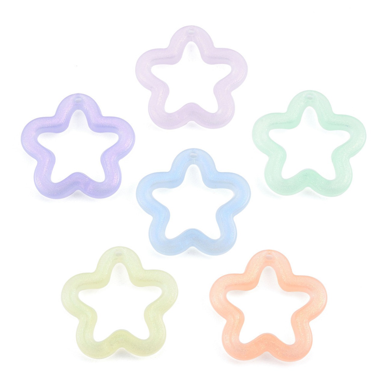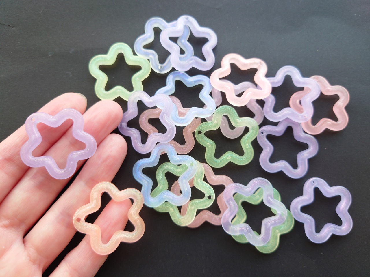 アクリル スター チャーム 枠 グリッターラメ ミックスカラー 4個