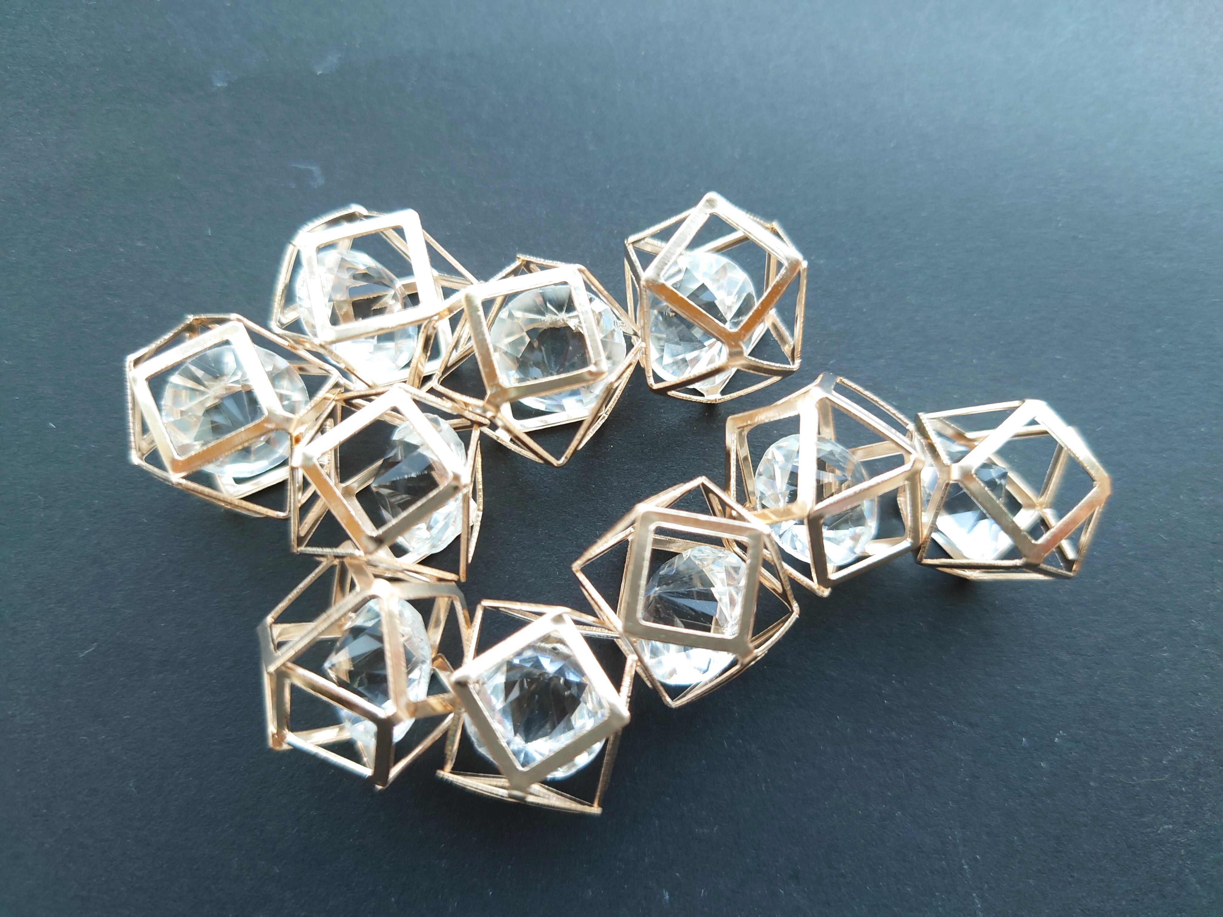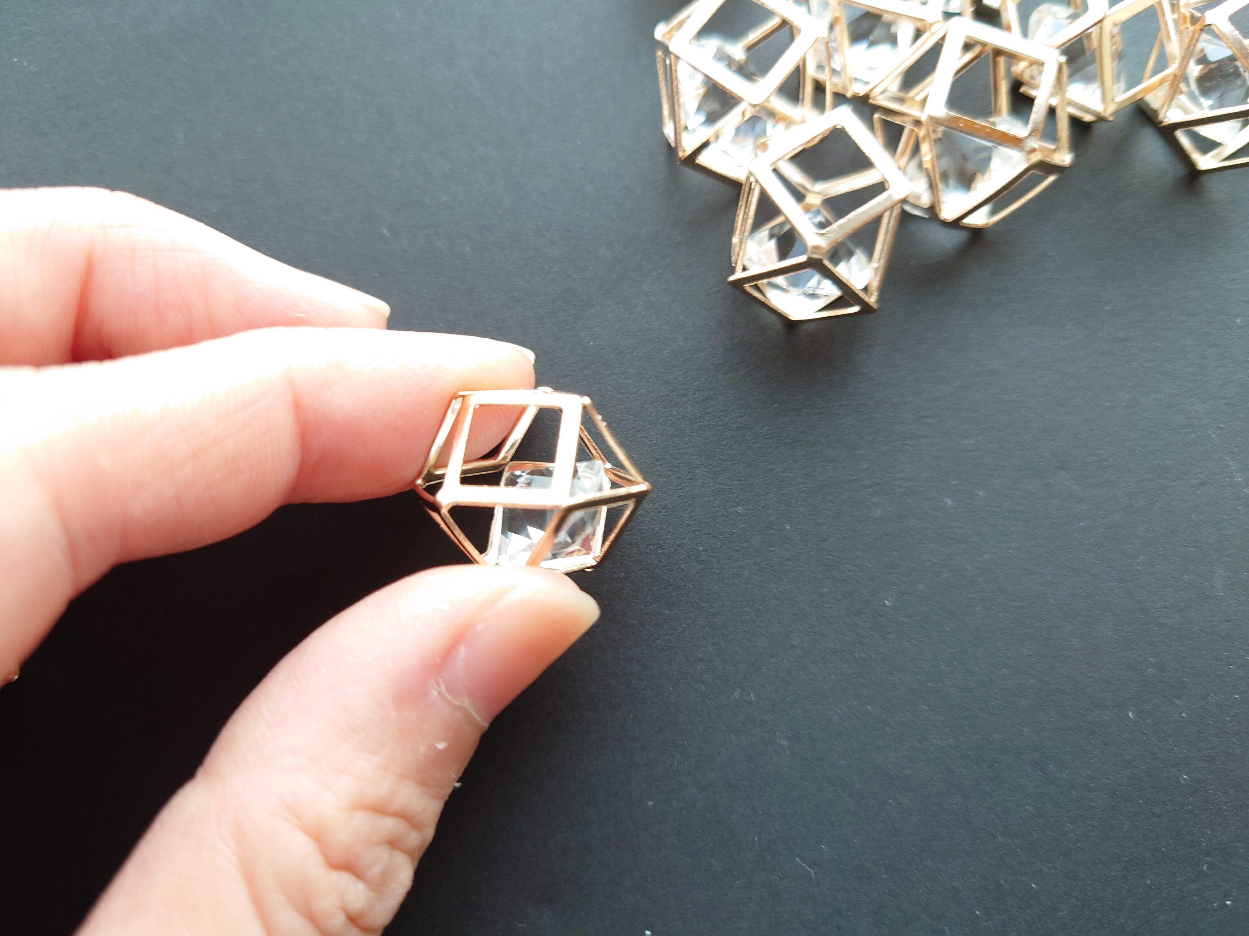 双円錐 アクリルラインストーン入り アイアン枠 1個