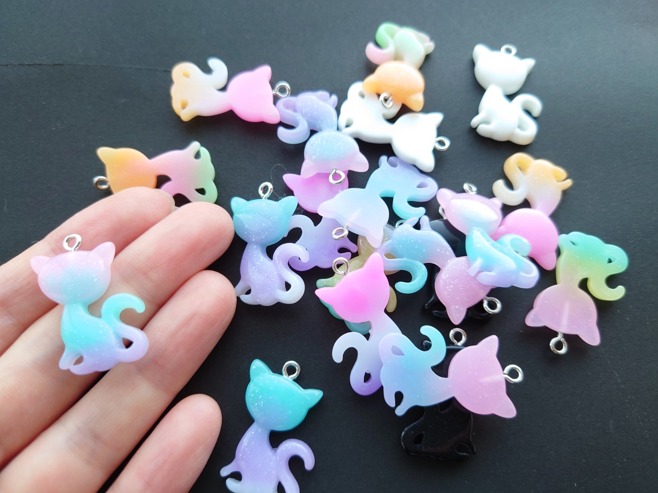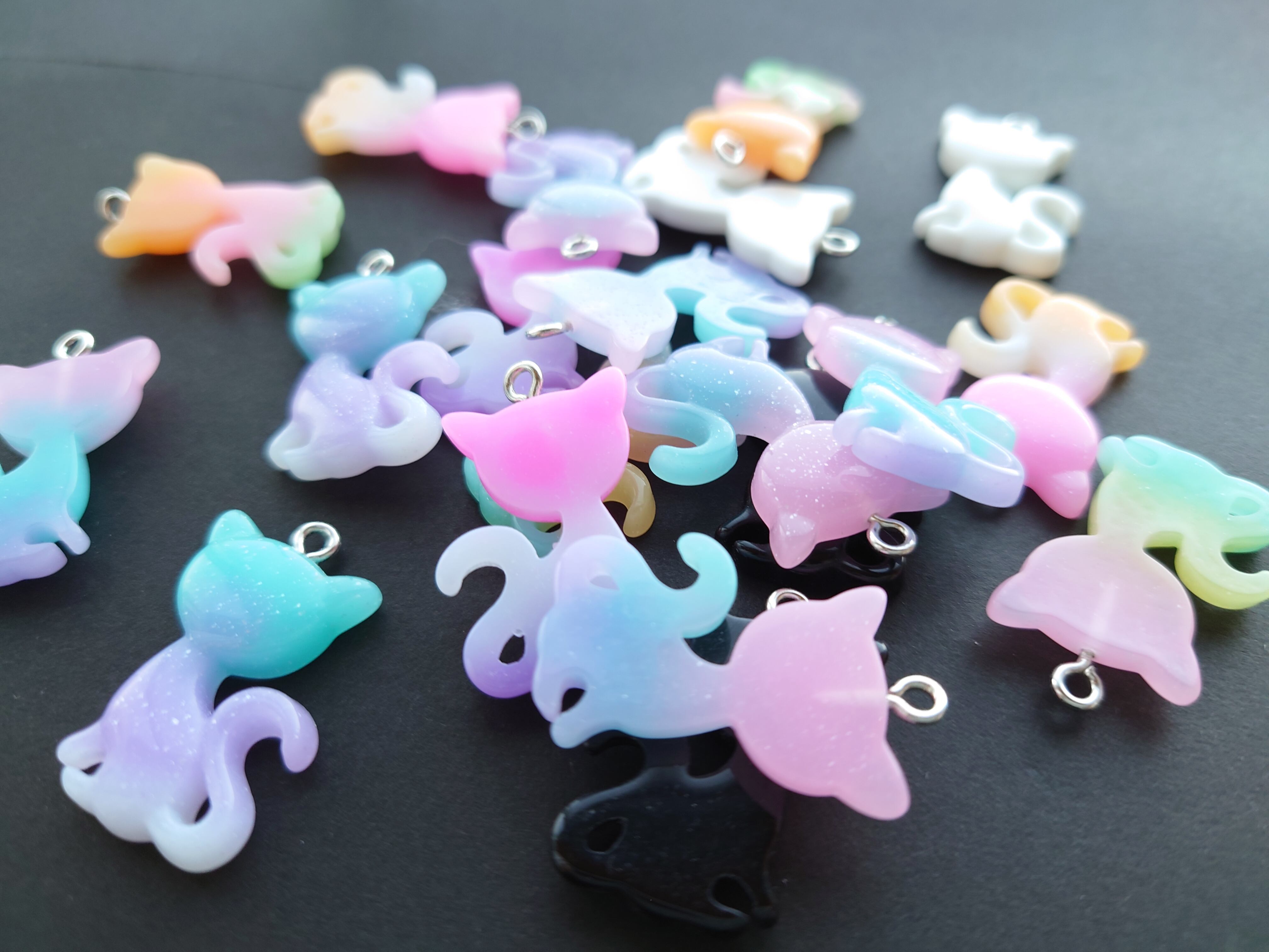 樹脂 猫 チャーム シルエット ミックスカラー 2個