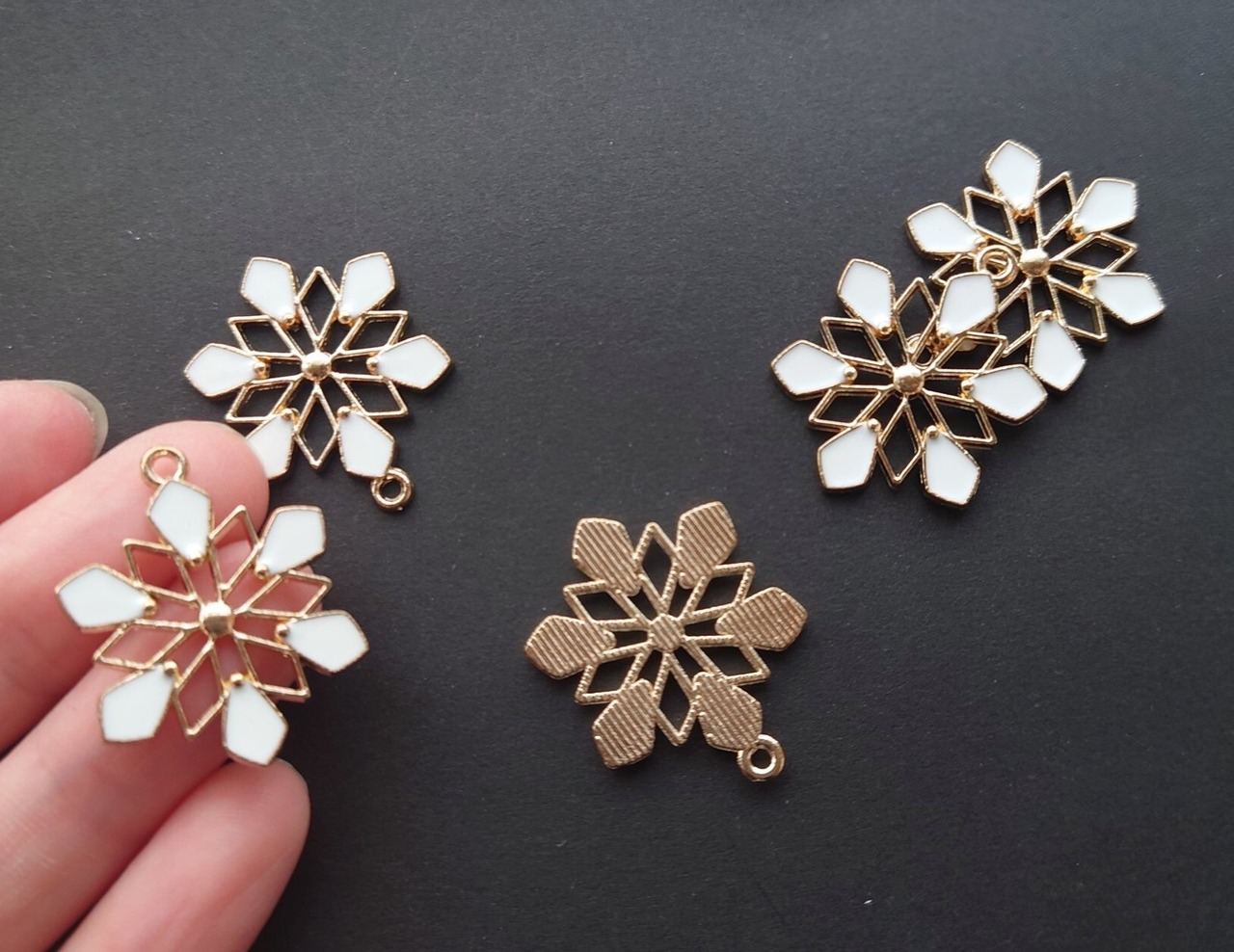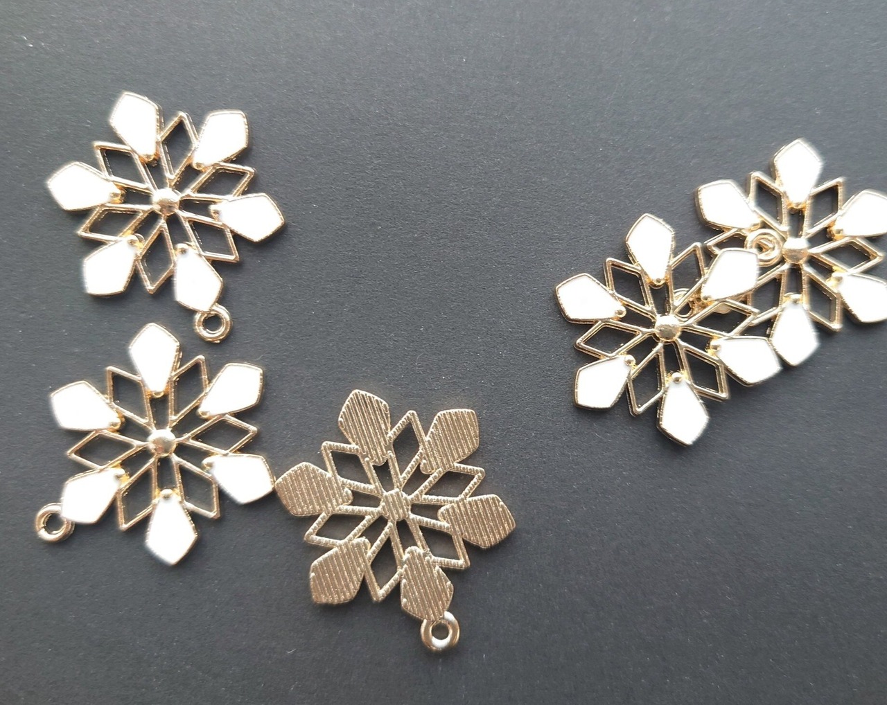 雪の結晶 チャーム エナメル 合金 ホワイト 1個