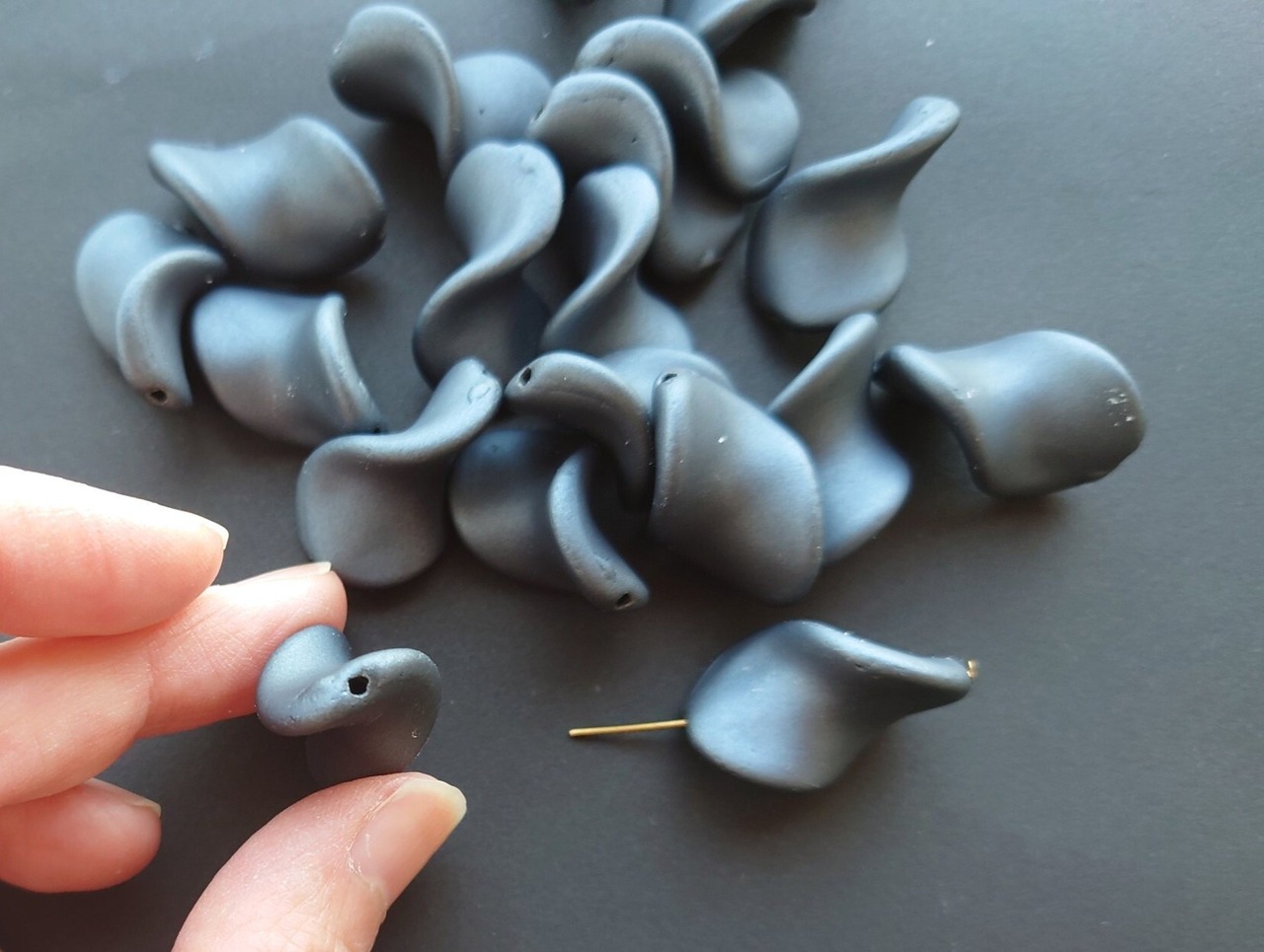 【値下げ在庫限り】ツイスト ビーズ ラバー加工 グレー 10個