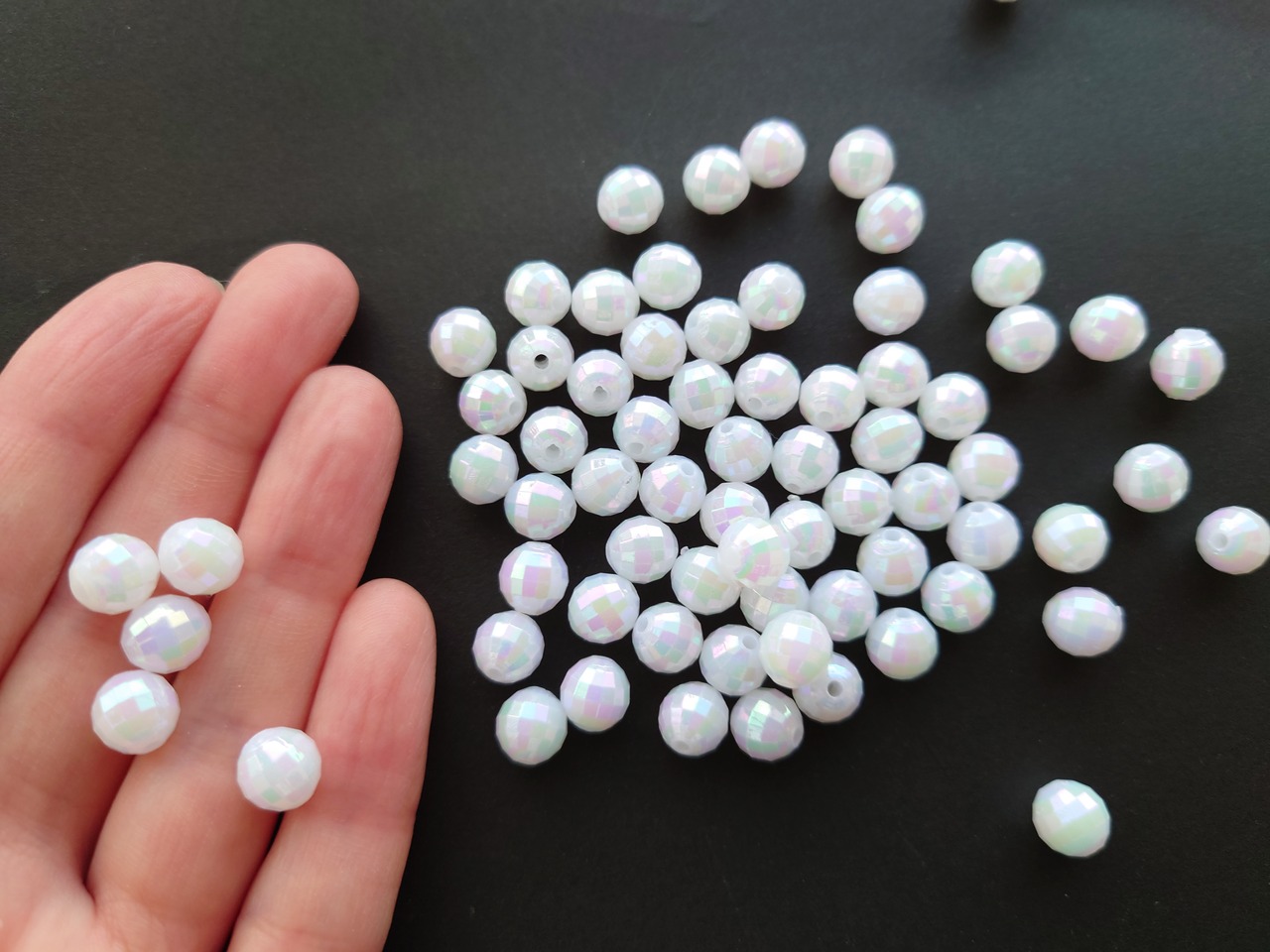 アクリル オーロラ 多面カット ミラーボール ホワイト ビーズ 8mm 20個