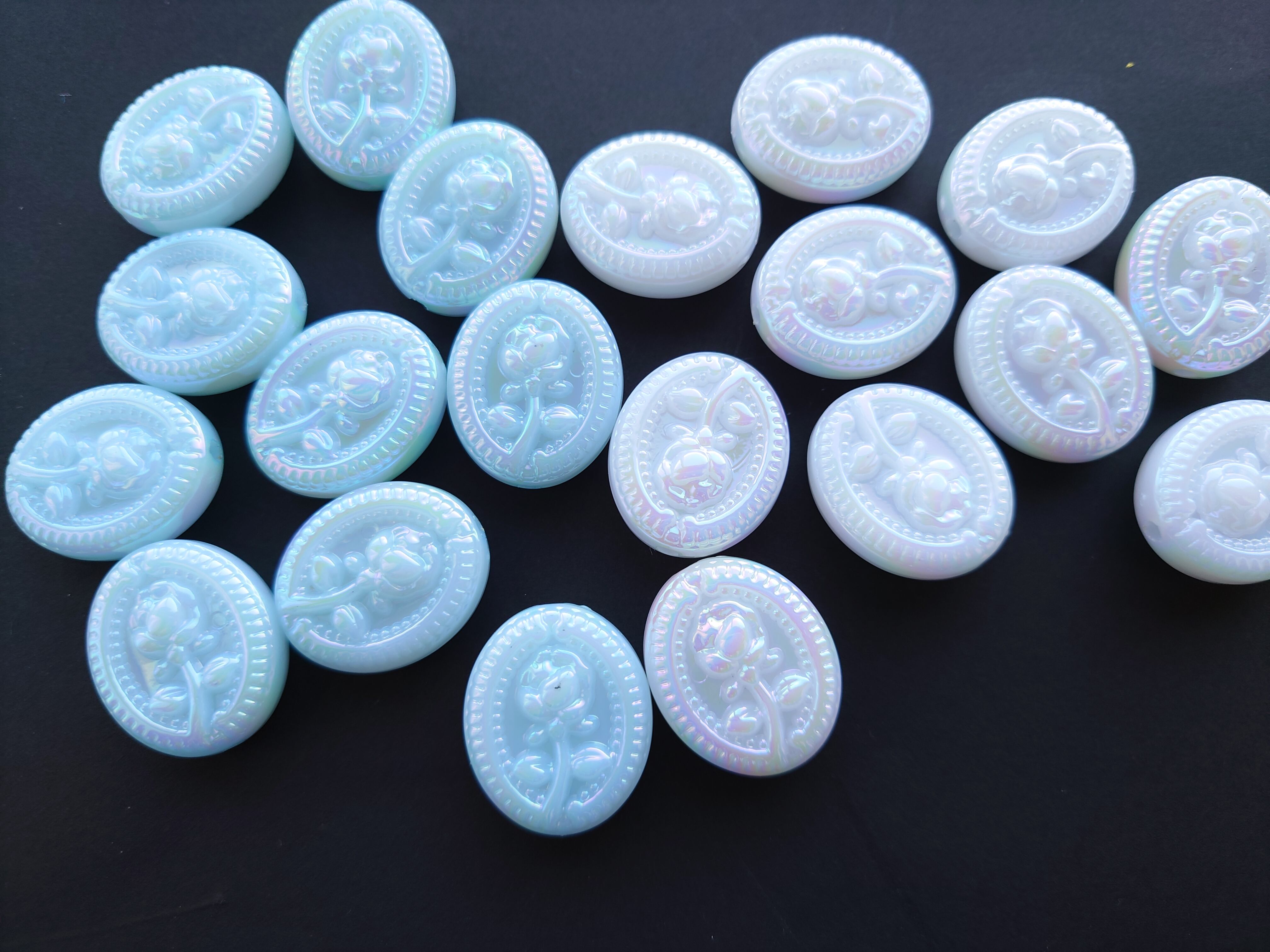 ミルクキャンディ みたいな フラワー ビーズ オーバル オーロラ 1個