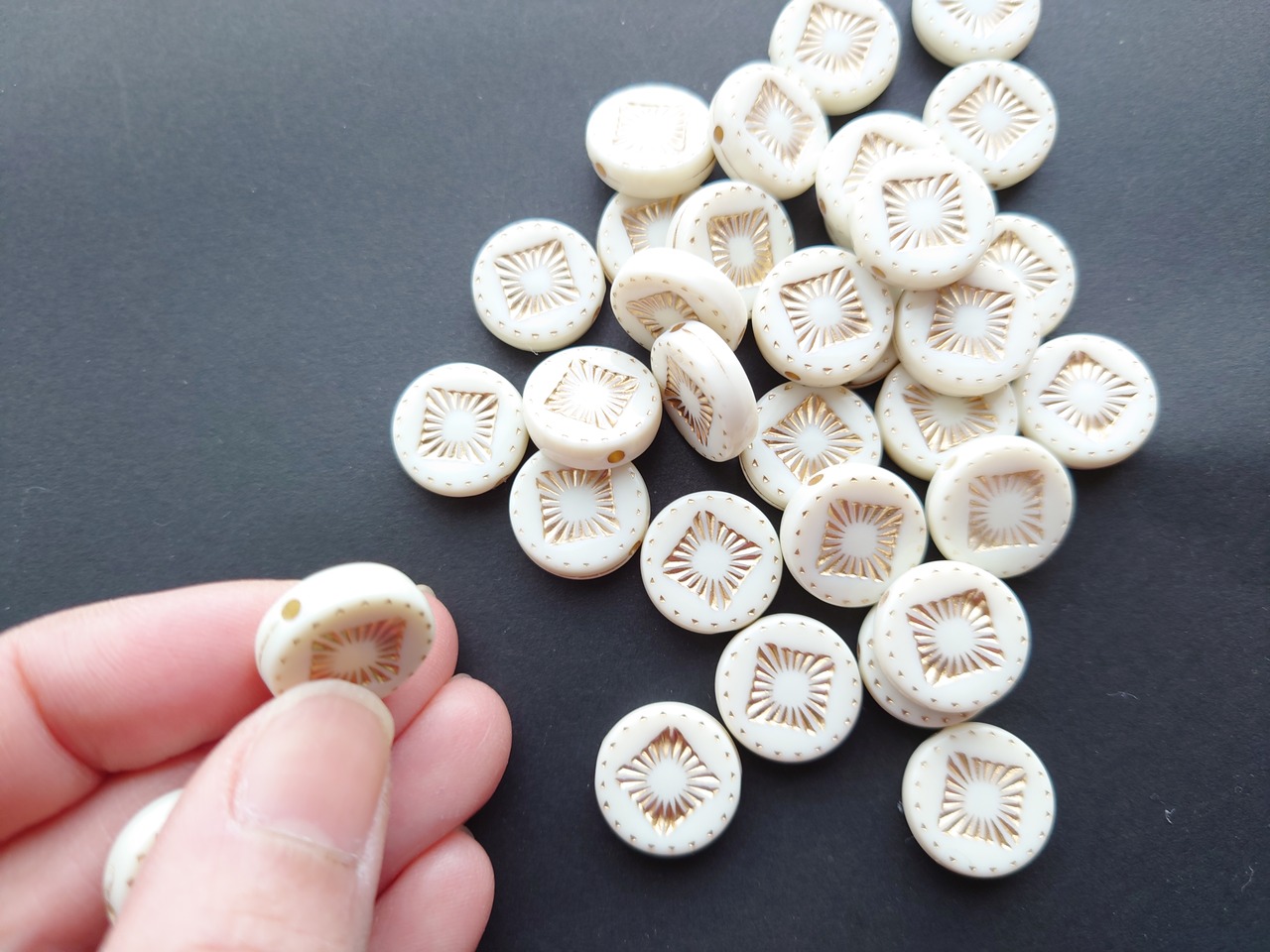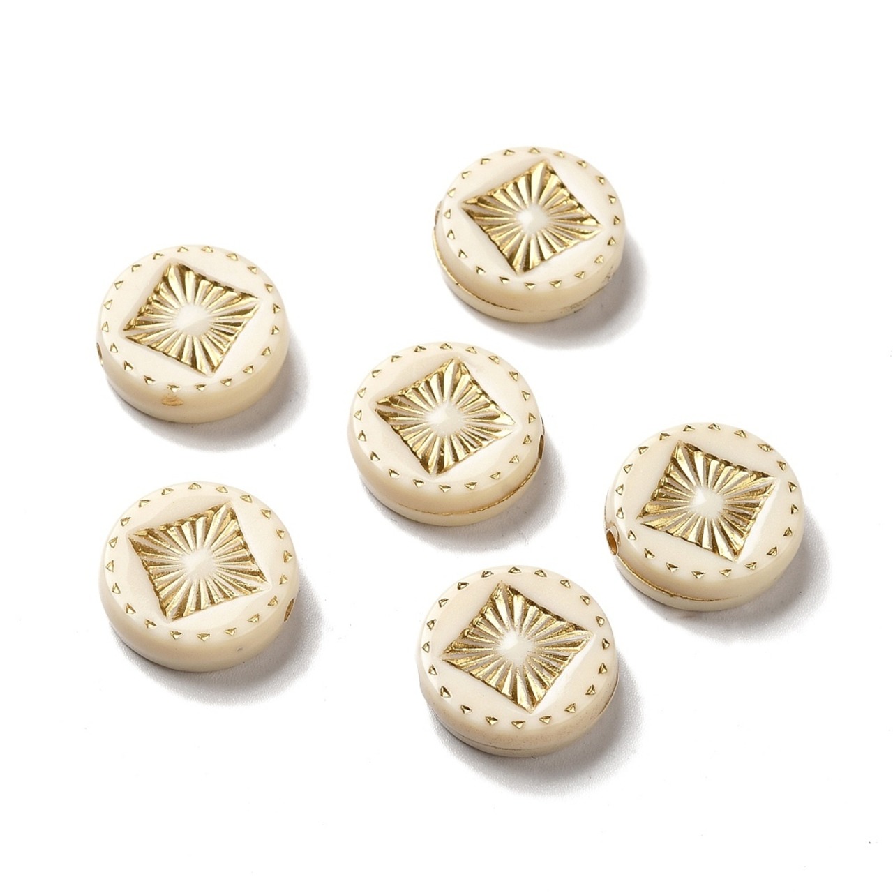アンティーク調 ゴールドライン フラット ラウンド ひし形 キラリ ベージュ 10個