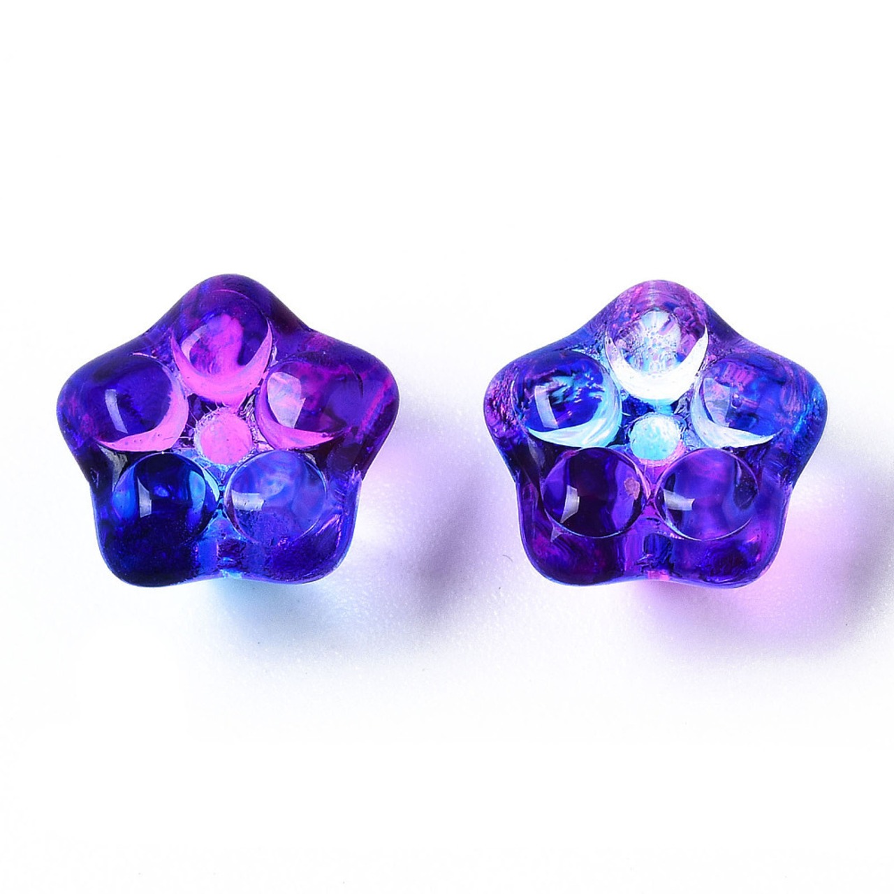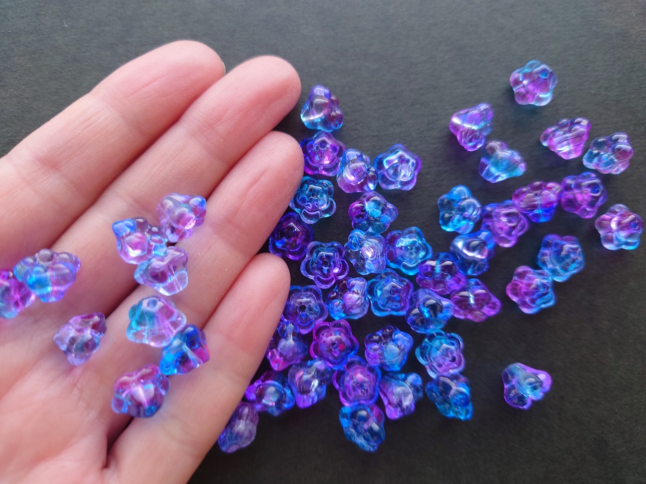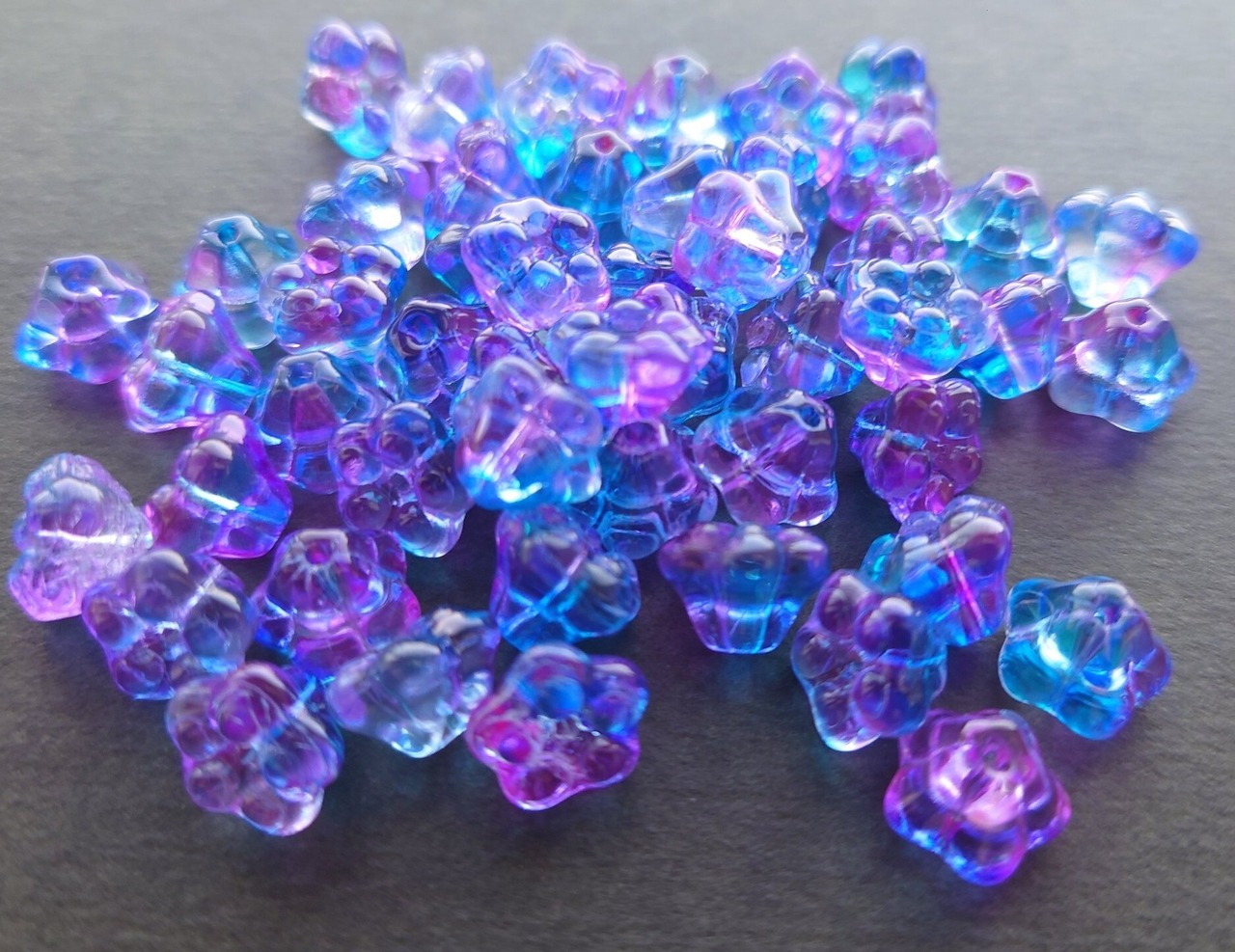フラワー ビーズ ツートン ブルーパープル ガラス 10個