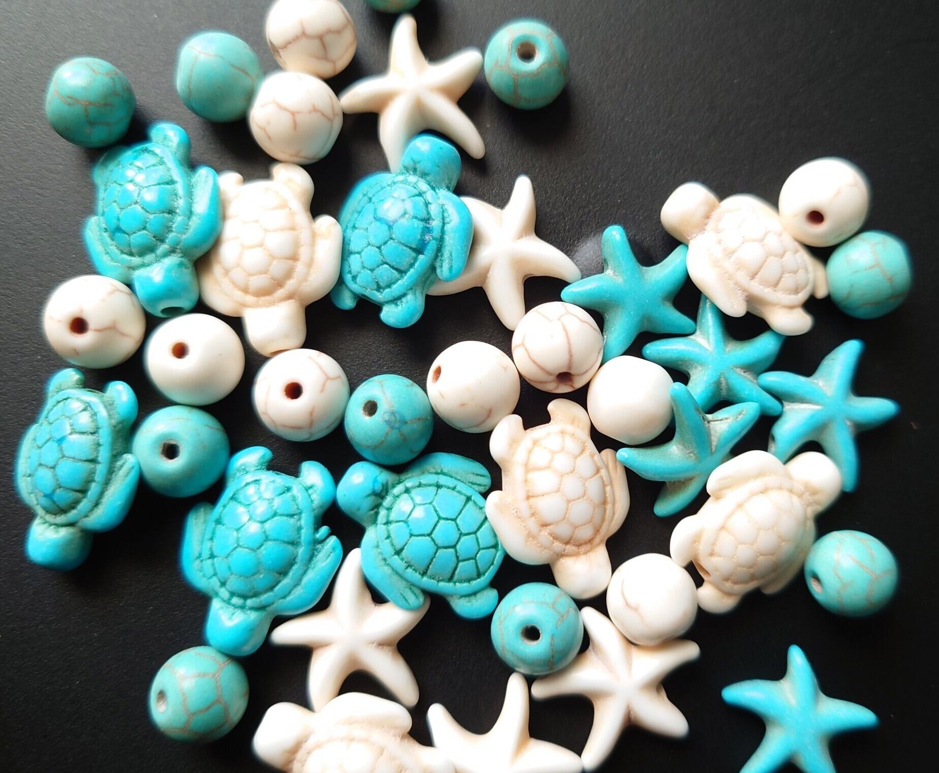 ハウライト ビーズ カメ ヒトデ ラウンド デザインミックス 10個