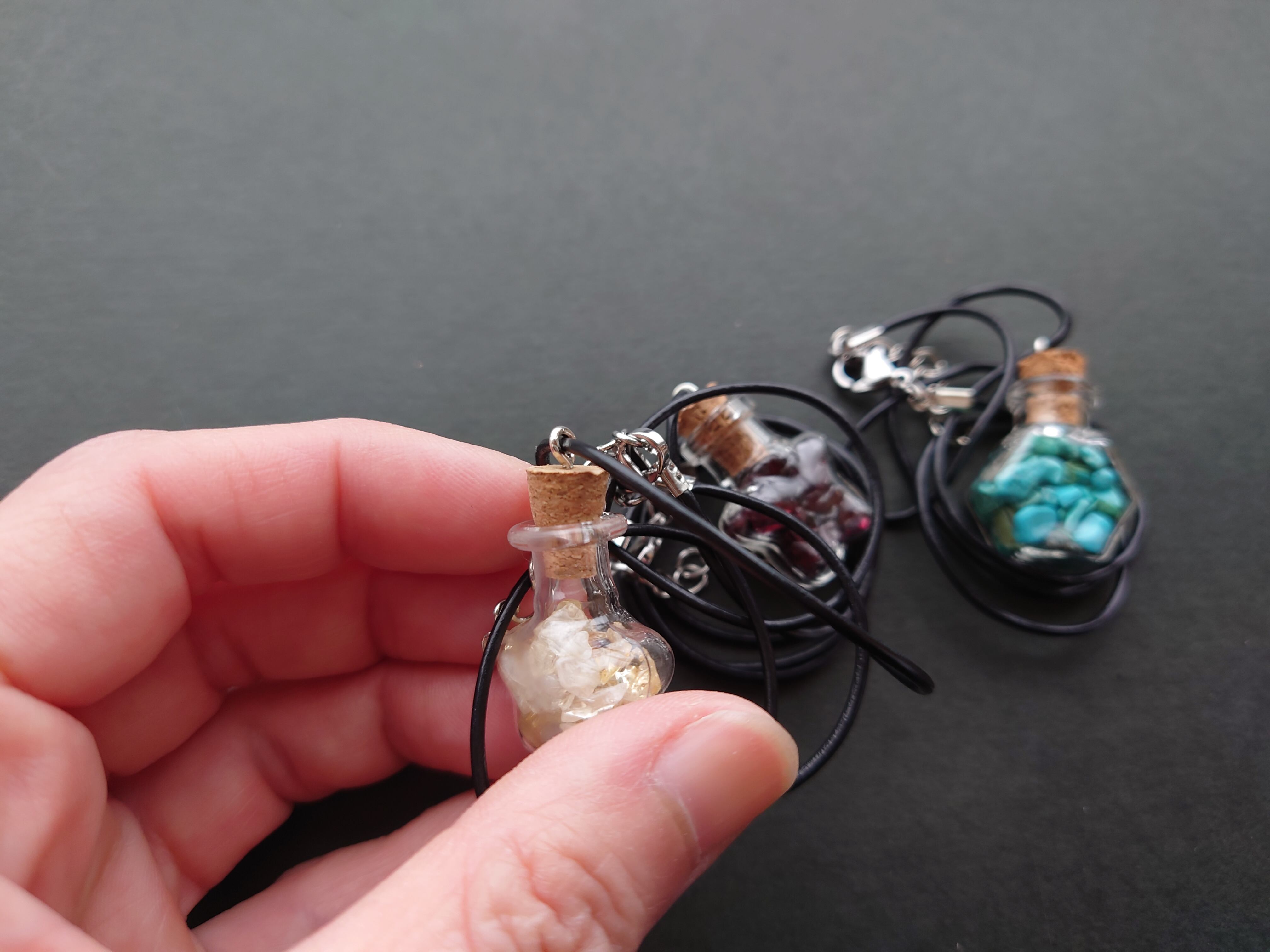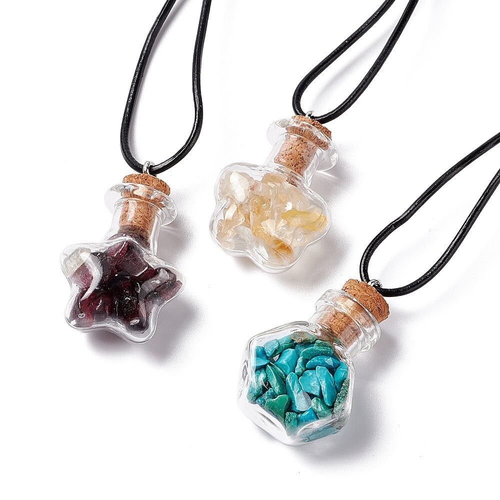ガラスボトル コルク栓 天然石 チップ ネックレス ミックスカラー 1個