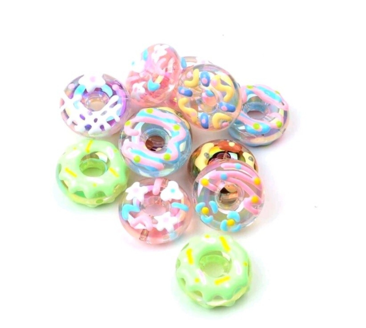 ドーナツ 大きめ ビーズ 穴3mm ミックスカラー 1個