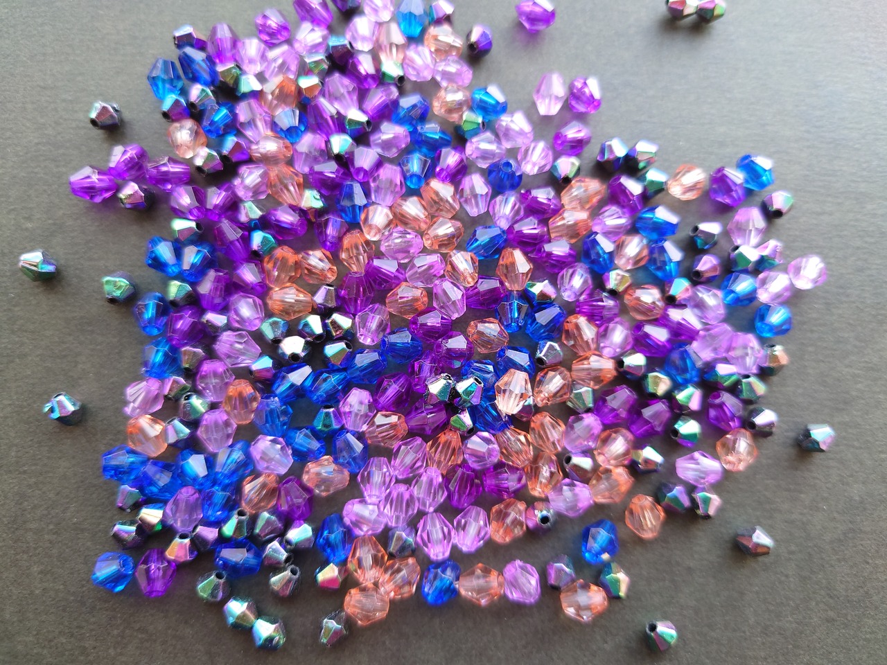 アクリル 双円錐 ビーズ 約5g クリア ミックスカラー