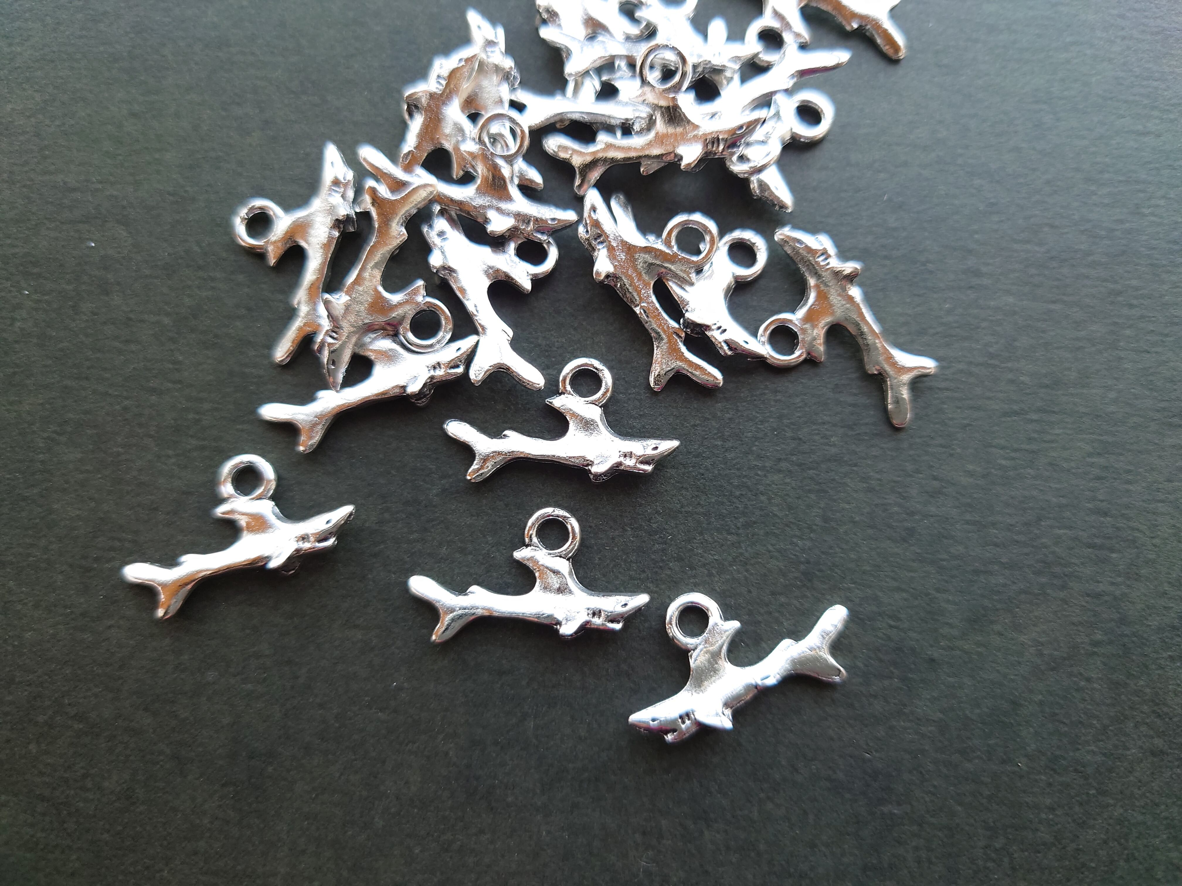サメ チャーム 合金 アンティーク調ロジウム色 10個